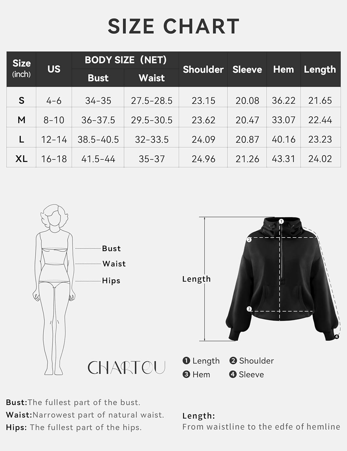 CHARTOU Women's Half Zip Pullover Hoodie Casual Kangaroo Pocket Crop Sweatshirt Tops