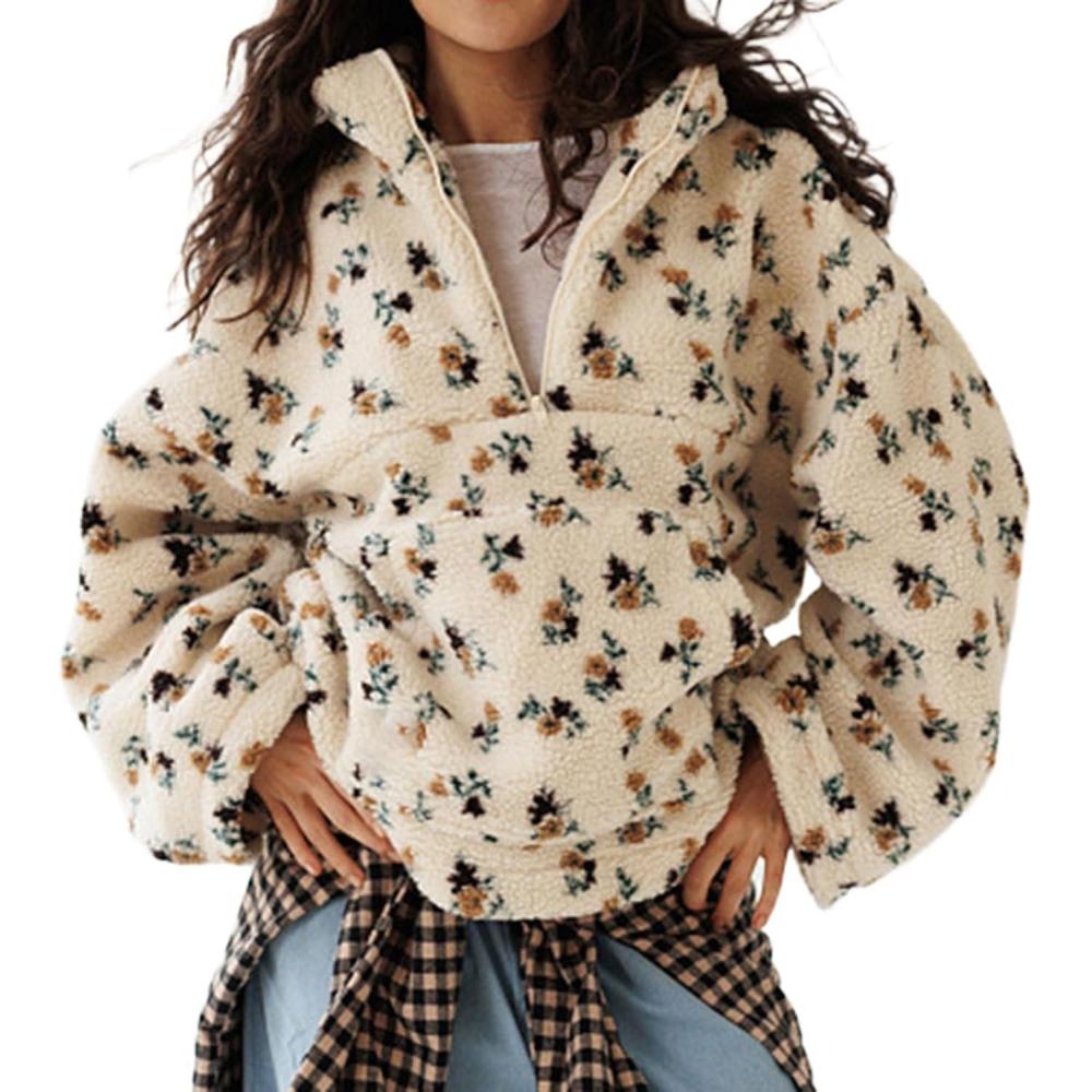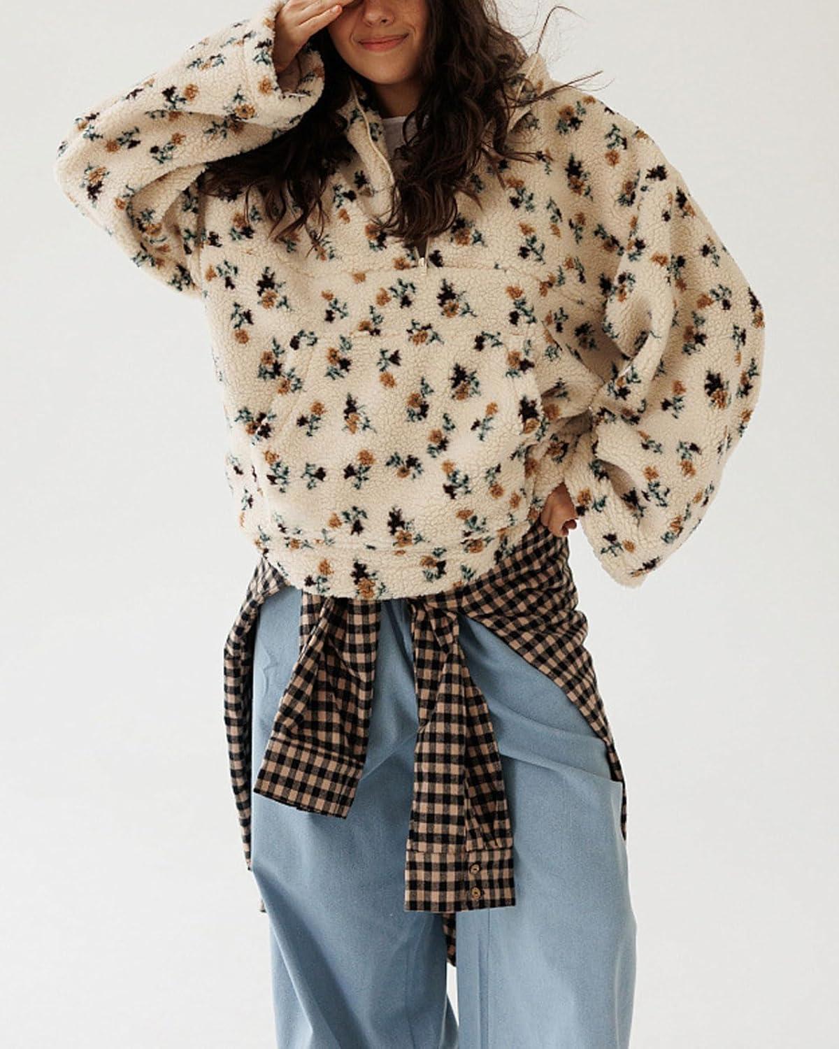Womens Half Zip Sherpa Pullover Striped Oversized Sweatshirt Floral Stand Collar Fleece Jacket Contrast striped fleece sweatshirts for women/ Lantern sleeve cozy sweaters for women/ Flower sherpa jacket women winter outwear/ Loose fit quarter zip pullover women Half zip pullover women cute cropped sweatshirt fuzzy warm teddy jacket women boyfriend floral mockneck sweatshirt long sleeve oversized pullover tops relaxed and loose fit short sweatshirt with a front kangaroo pocket striped y2k hoodies women Winter shearing jacket womens oversized sweatshirt Women floral fleece half zip pullover fall winter oversized cozy sweater contrast striped fleece sweatshirt cute flower sherpa jacket cropped cargo hoodie casual outwear loose warm thick boyfriend sweatshirt y2k girls long sleeve tops fashion clothes