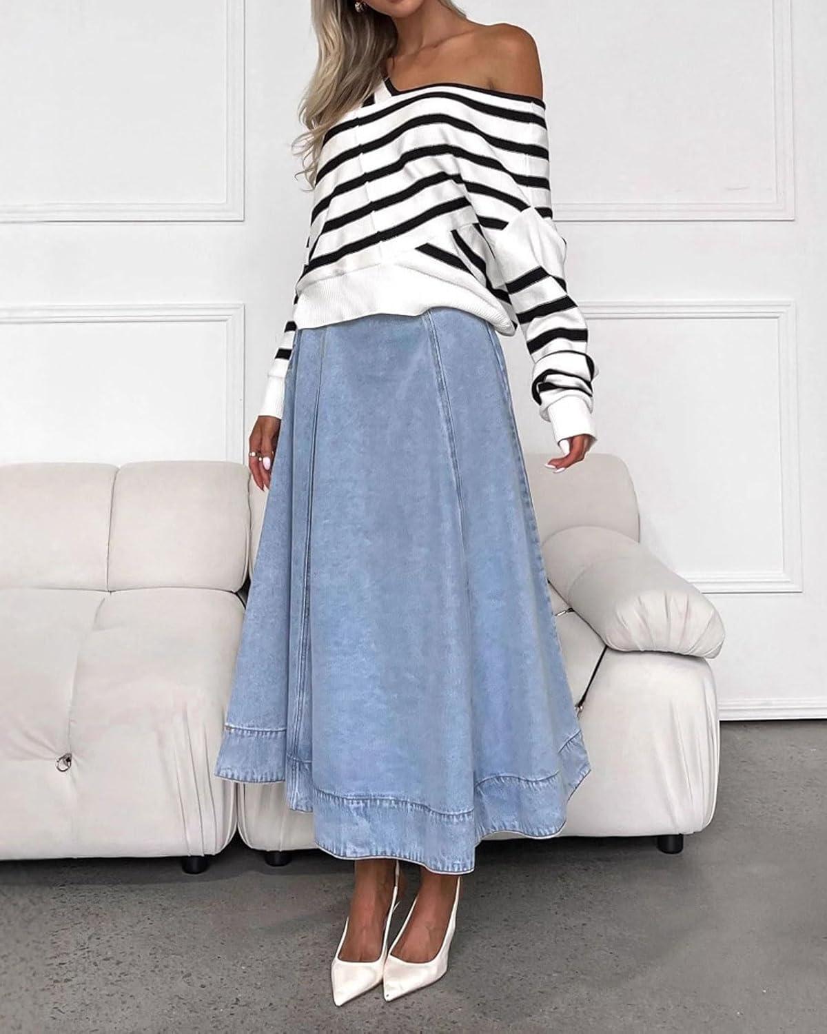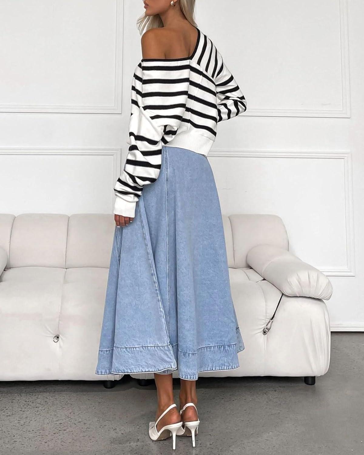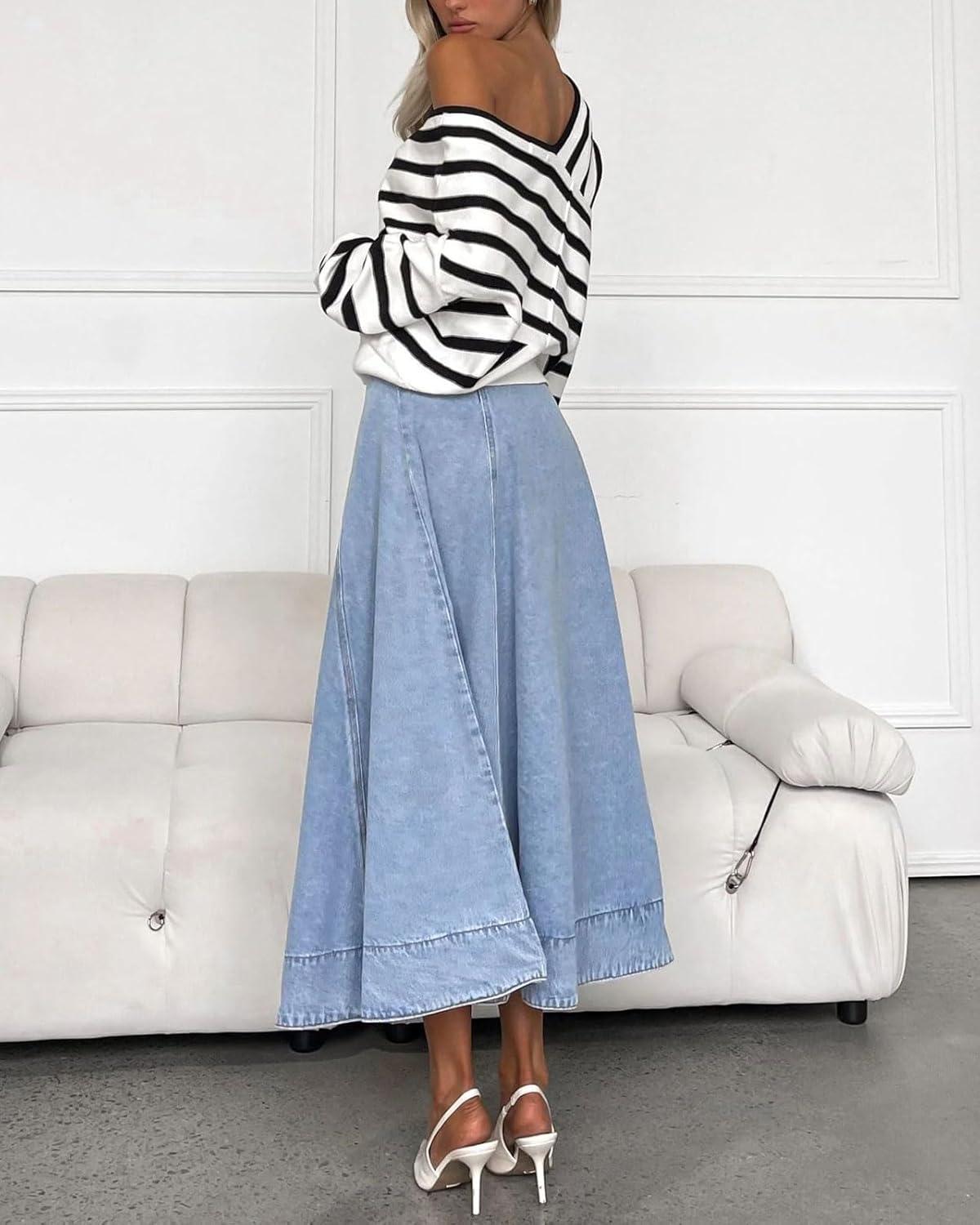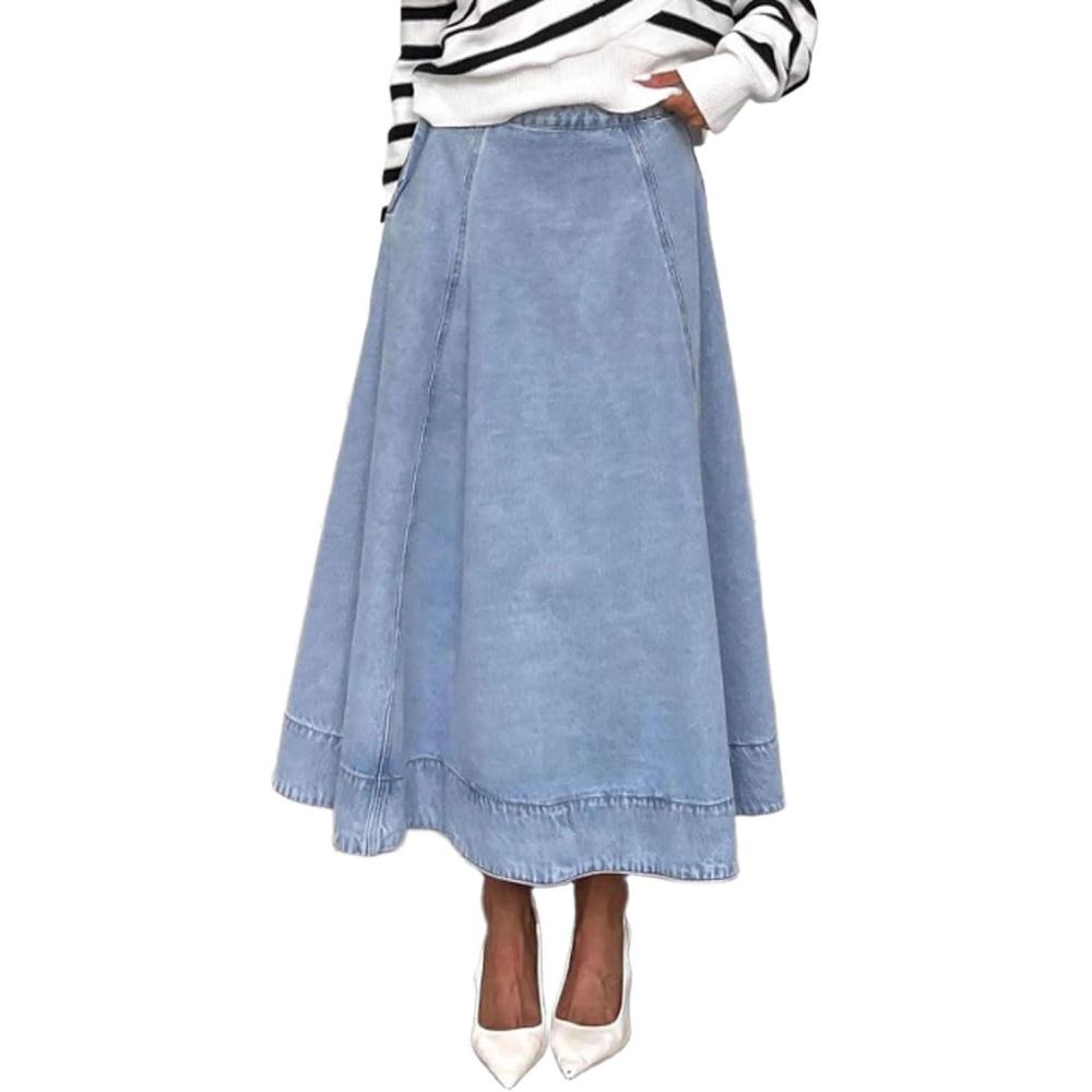 Women's High Waist Maxi Jean Skirt Pleated Loose Swing Flare Hem Flowy Long Denim Skirt Elegant side zip up denim long skirt with big swing hem/ Blue long jean skirts for women denim maxi skirt Stylish pleated maxi skirt flared a line skirt Casual denim maxi skirt ladies dressy big swing pleated skirt Women jean skirt dark blue jean skirts for women high waisted denim maxi skirt dressy flare A line long skirt vintage wash jean skirts for women trendy long jean skirt casual flowy long swing pleated maxi denim skirt chic cowgirl outfits side zipper bell bottom skirt western style party skirt