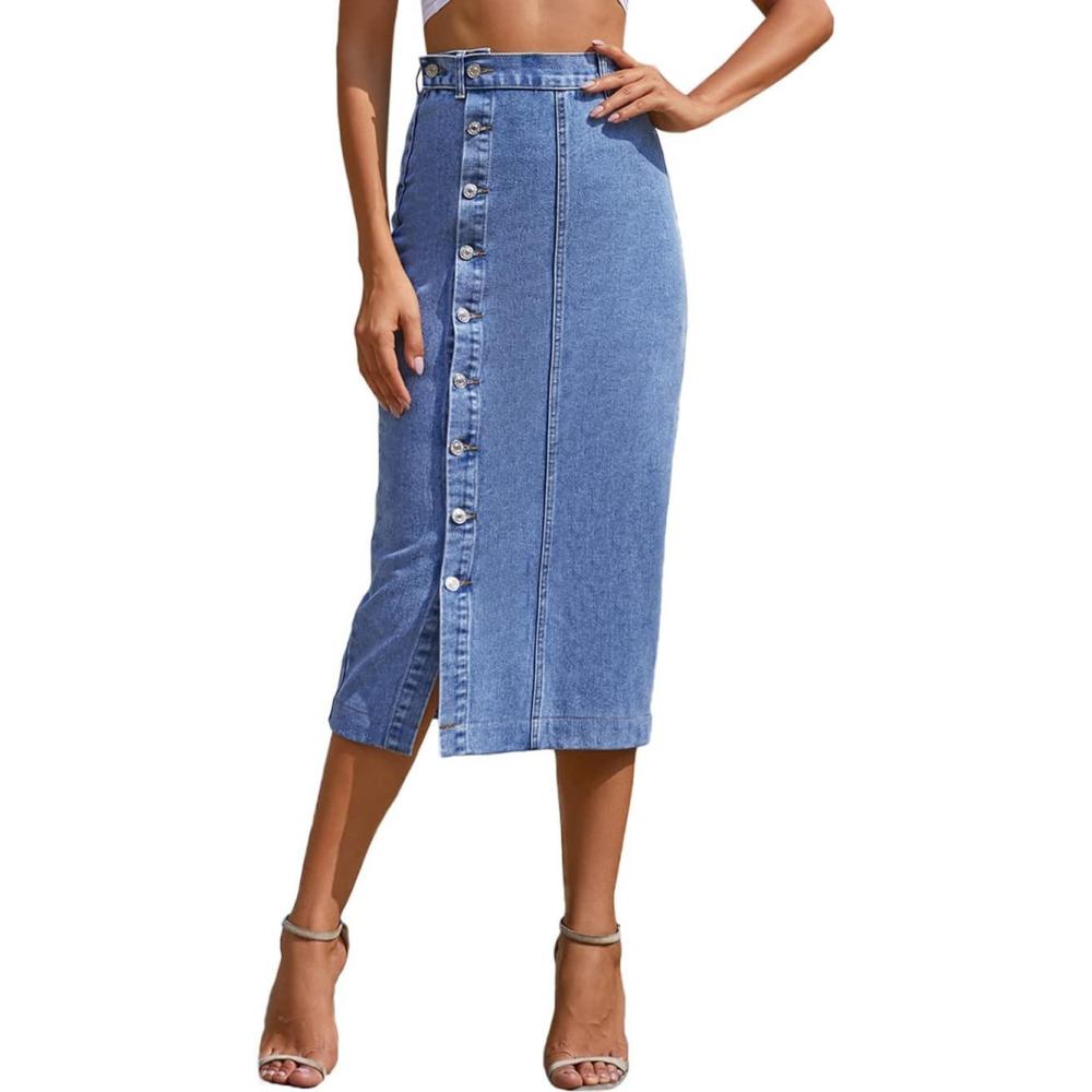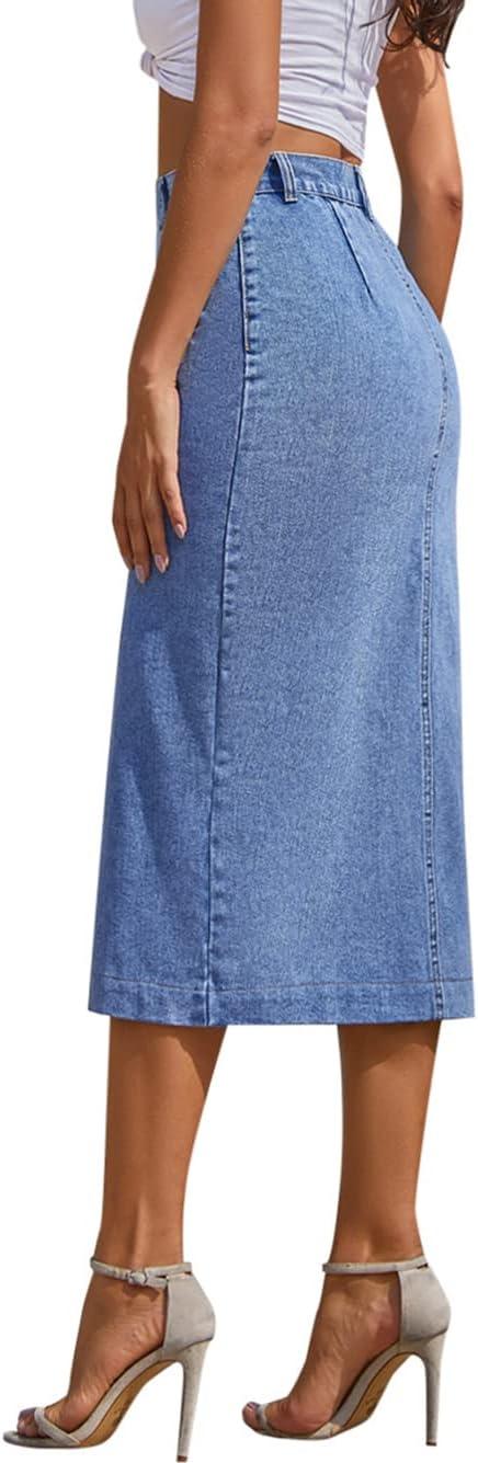 CHARTOU Women’s High Waist Washed Stretchy Slit Bodycon Button Down Denim Jean Pencil Long Skirt(Blue)