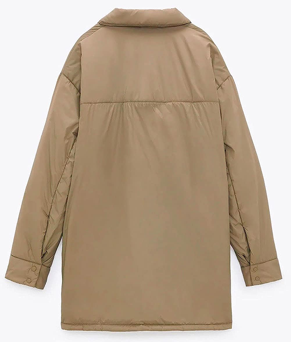 Features: Turn down lapel/ Long sleeves/ Drop shoulder/ 2 Chest pockets/ Curved hemline/ Solid color- Army green, black, camel