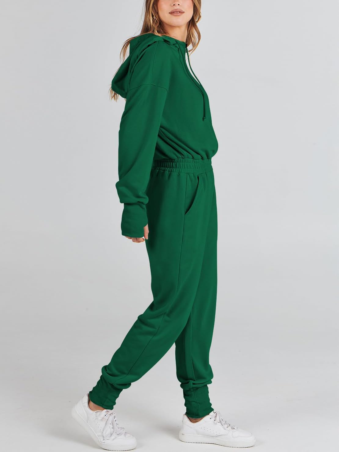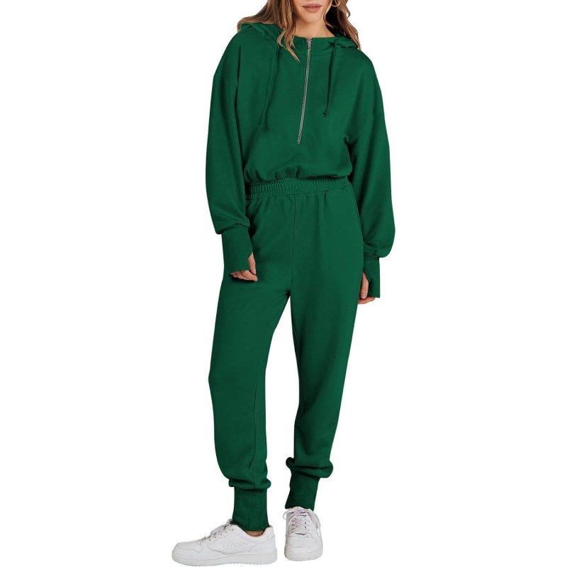 Be the first to review “CHARTOU Women’s Jumpsuit Half Zip Hooded One Piece Outfit Elastic Waist Long Jogger Pants Jumpsuits Rompers with Pockets(Green)”