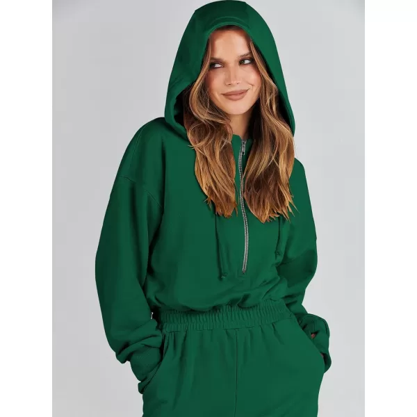 CHARTOU Women’s Jumpsuit Half Zip Hooded One Piece Outfit Elastic Waist Long Jogger Pants Jumpsuits Rompers with Pockets(Green)