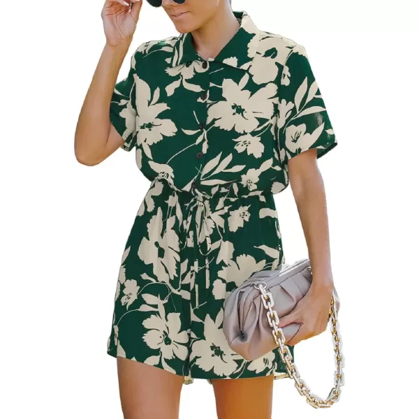 CHARTOU Women’s Lightweight Floral Print Wide-Leg Beach Shorts Romper Overalls Jumpsuit(Green)