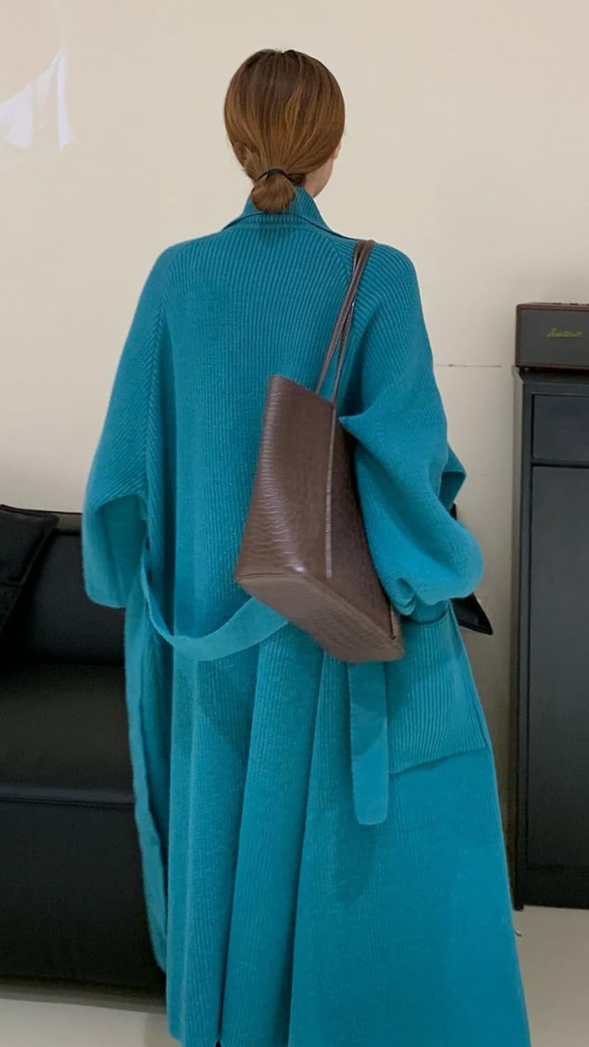 CHARTOU Women’s Long Sweater Blazer Jacket Coatigan Open Front Cardigan Sweater Jacket Overcoat(Blue)