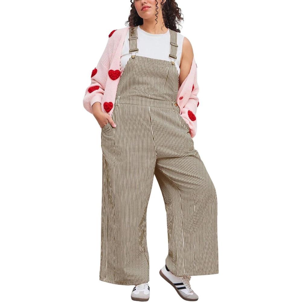CHARTOU Womens Loose Stripes Bib Overalls Jumpsuit Adjustable Strap Cotton Linen Wide Leg Baggy Pants Romper Womens cute oversized overalls with pockets/ Cargo pants one piece jumpsuits for women/ Spring plus size romper jumpsuit This casual stripes overalls romper featured on adjustable spaghetti strap, stripes, 1 roomy bib pocket and 2 side pockets, wide leg pants, roomy fut in seat and thigh, casual plus size one piece jumpsuits, loose waist with button, cargo mid rise pants, 2color- red romper pants, green overalls; Womens baggy pants overalls were crafted from cotton linen fabric, lightweight, soft and comfy to wear Casual Cargo Jumpsuits: Spring stripes piece jumpsuits for women daily wear/ Casual wide leg overalls for women plus size pants with pockets/ Cute linen bibs overalls loose fit long romper/ Baggy green overalls for women trendy/ Adjustable strap oversized cargo cotton pants rompers/ Loose fit mid waisted baggy overalls cotton jumpsuits with stripes Women baggy bib overalls loose fit stripes one piece jumpsuits for women casual cotton wide leg overalls for women plus size mid waist oversized long linen romper adjustable straps green overalls spring palazzo pants with pockets