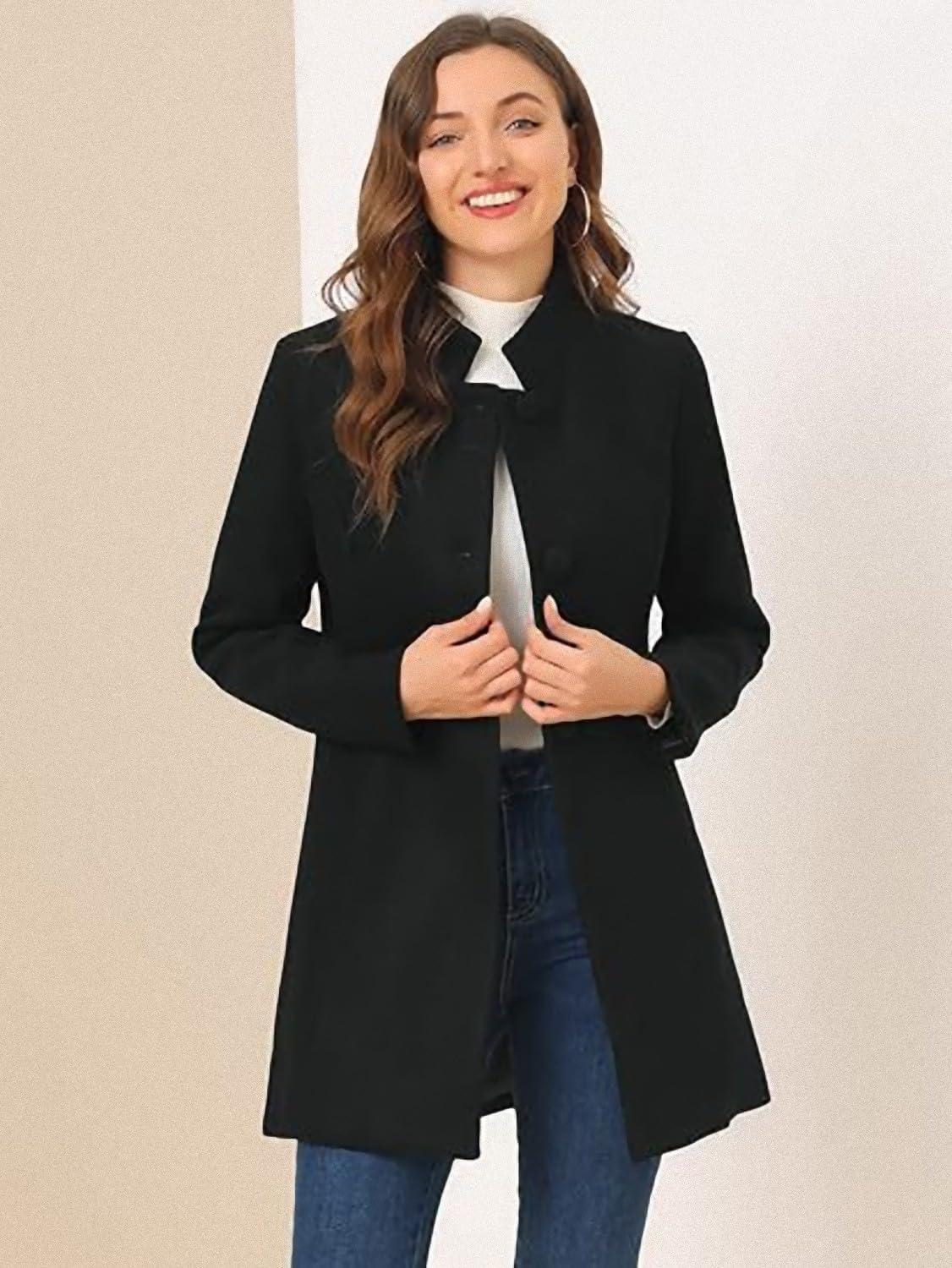 CHARTOU Womens Mid-Long Woolen Pea Coat Stand Collar Single Breasted Wool Blend Jacket Blazer Winter Overcoat with Pockets(Black)
