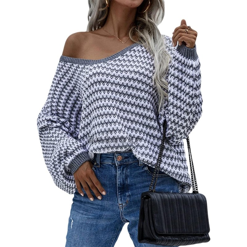 Get your hands on our exclusive CHARTOU Women’s Oversized Comfy Lantern Sleeve Striped Cable Knit Sweater Jumper Top collection, now at a discounted price.