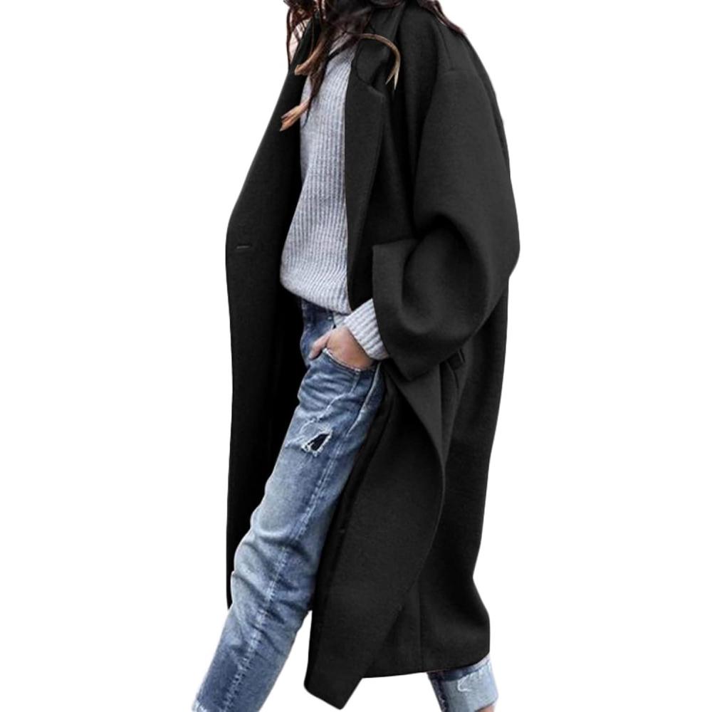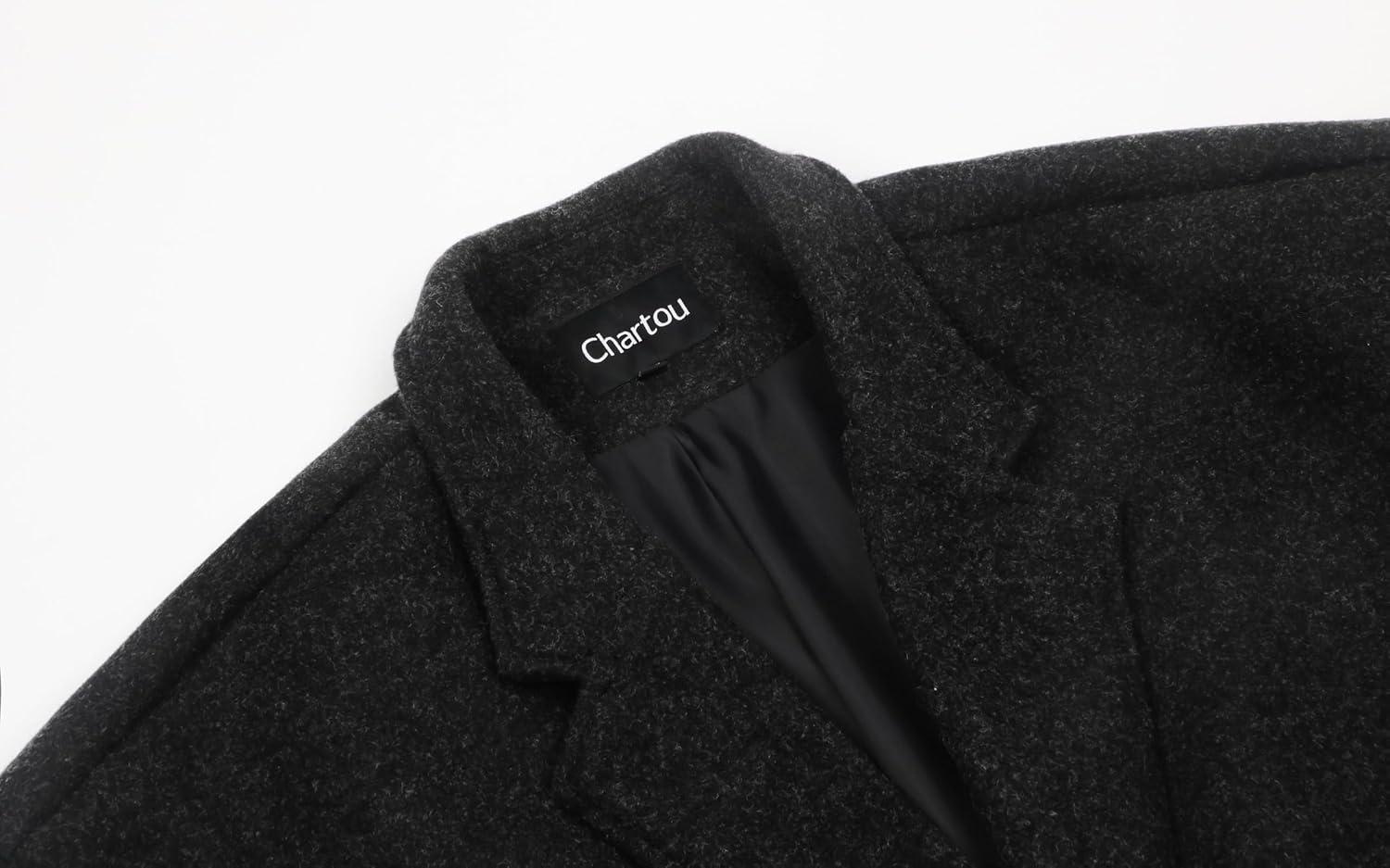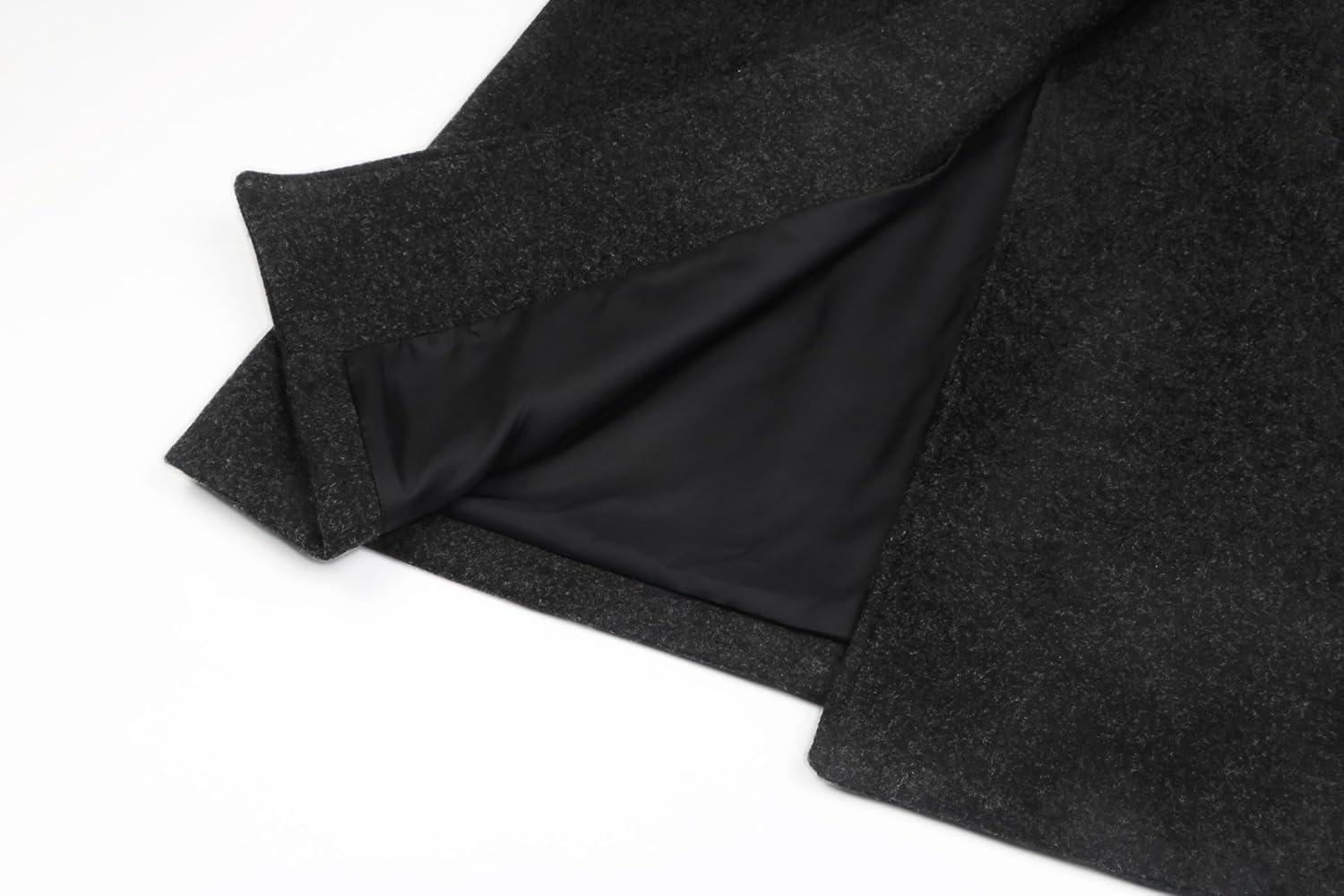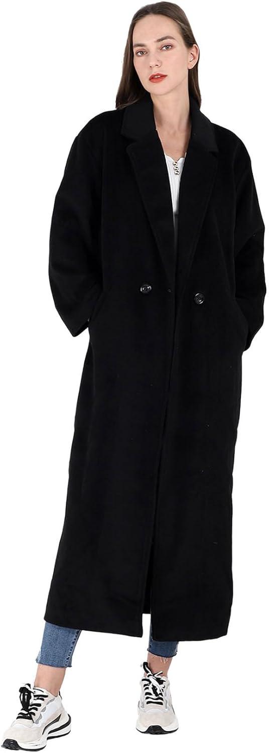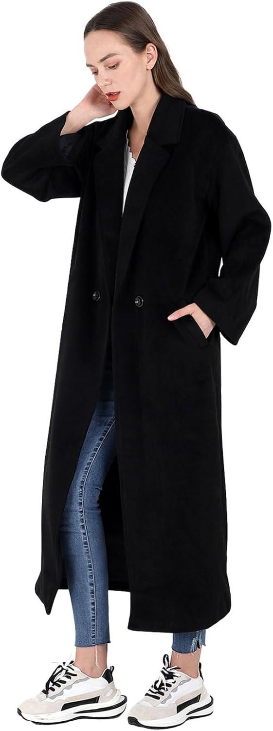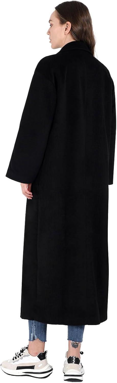 CHARTOU Women’s Oversized Notched Collar Wool Blend Single Breast Midi Long Trench Coat(Black)