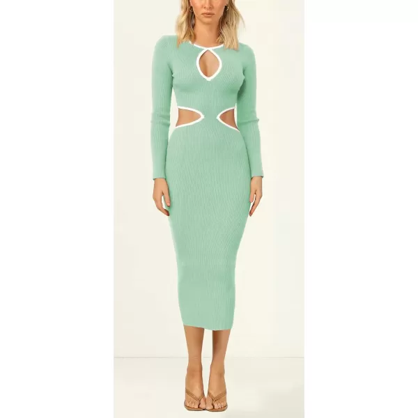 CHARTOU Women’s Sexy Bodycon Cutout Contrast Color Maxi Long Pencil Sweater Dress(Green)