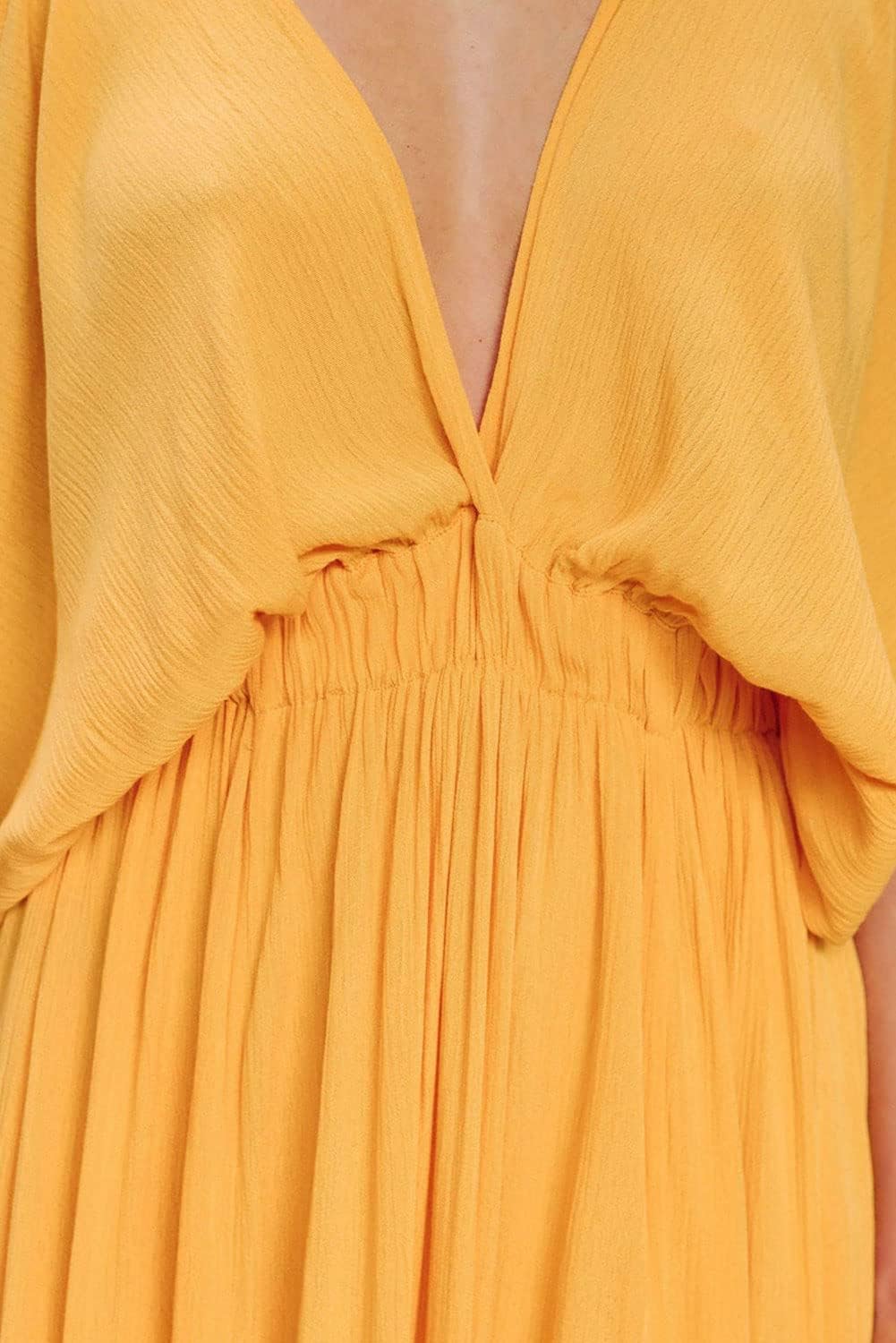CHARTOU Women’s Sexy Cold Shoulder Tie Deep V Neck Ruffle Maxi Dress Backless Flowy Beach Dress(Yellow)
