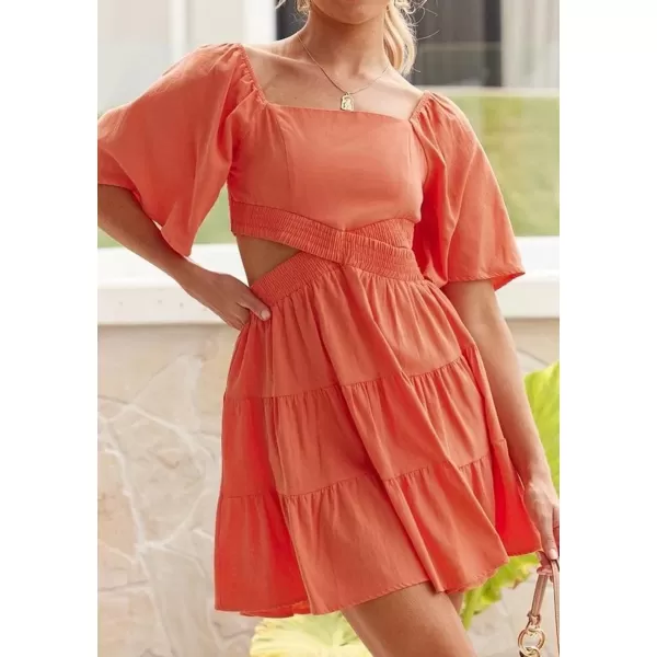 CHARTOU Women’s Sexy Cut Out Square Neck Backless Ruffle Mini Short Dress(Orange)