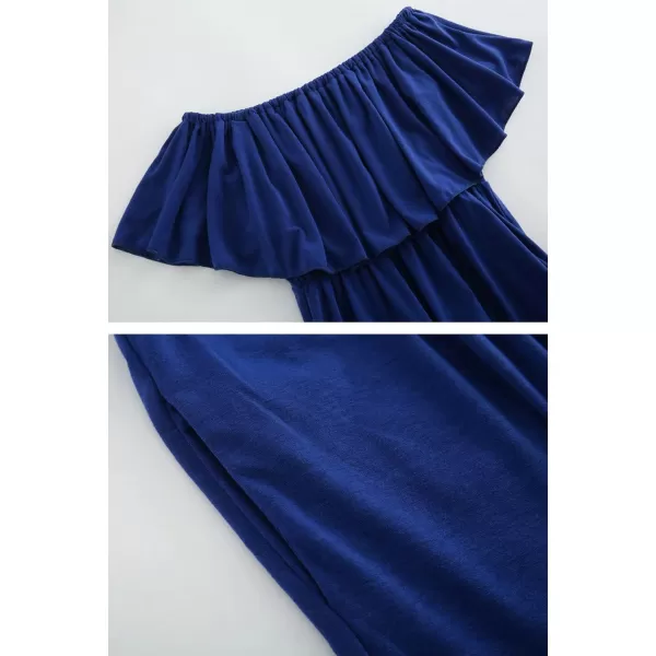 CHARTOU Women’s Sexy Off Shoulder Ruffle Maxi Dress Side Slit Flowy Beach Party Dress with Pocket(Blue)