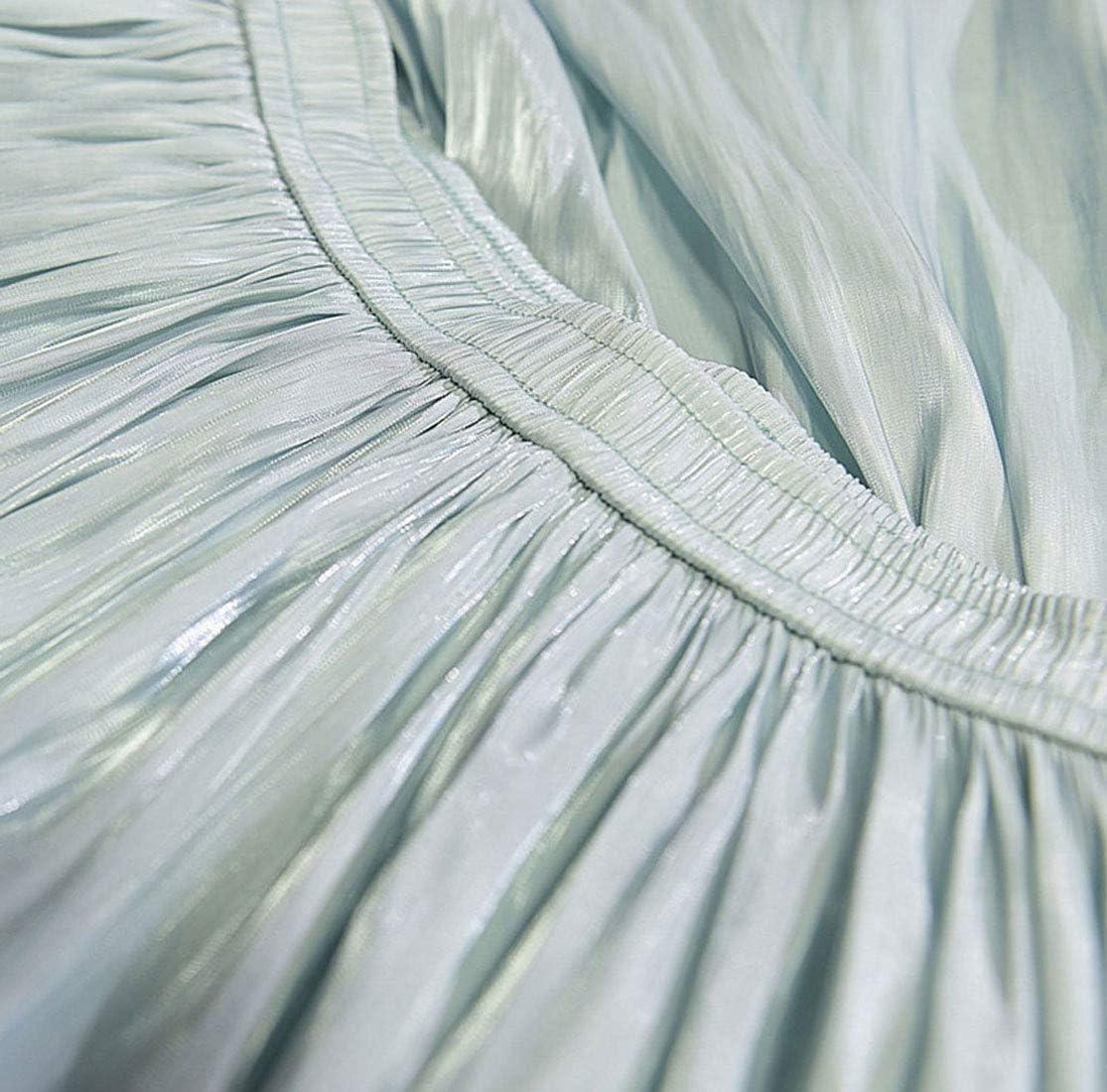 CHARTOU Womens Silky Lustrous Elastic Waist Pleated Accordion Midi Long Skirts(Light Green)