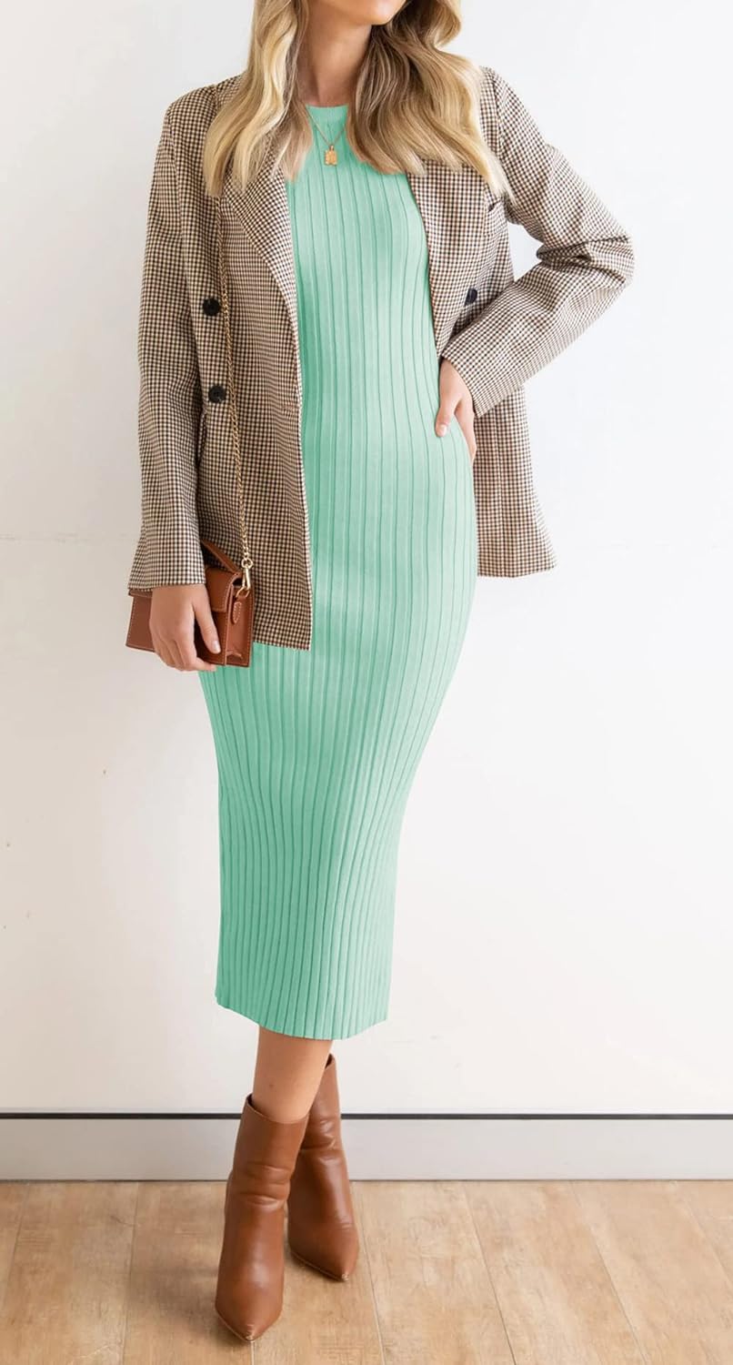 Be the first to review “CHARTOU Women’s Sleeveless Back Slit Rib-Knit Midi Long Sweater Bodycon Dress(Green)”
