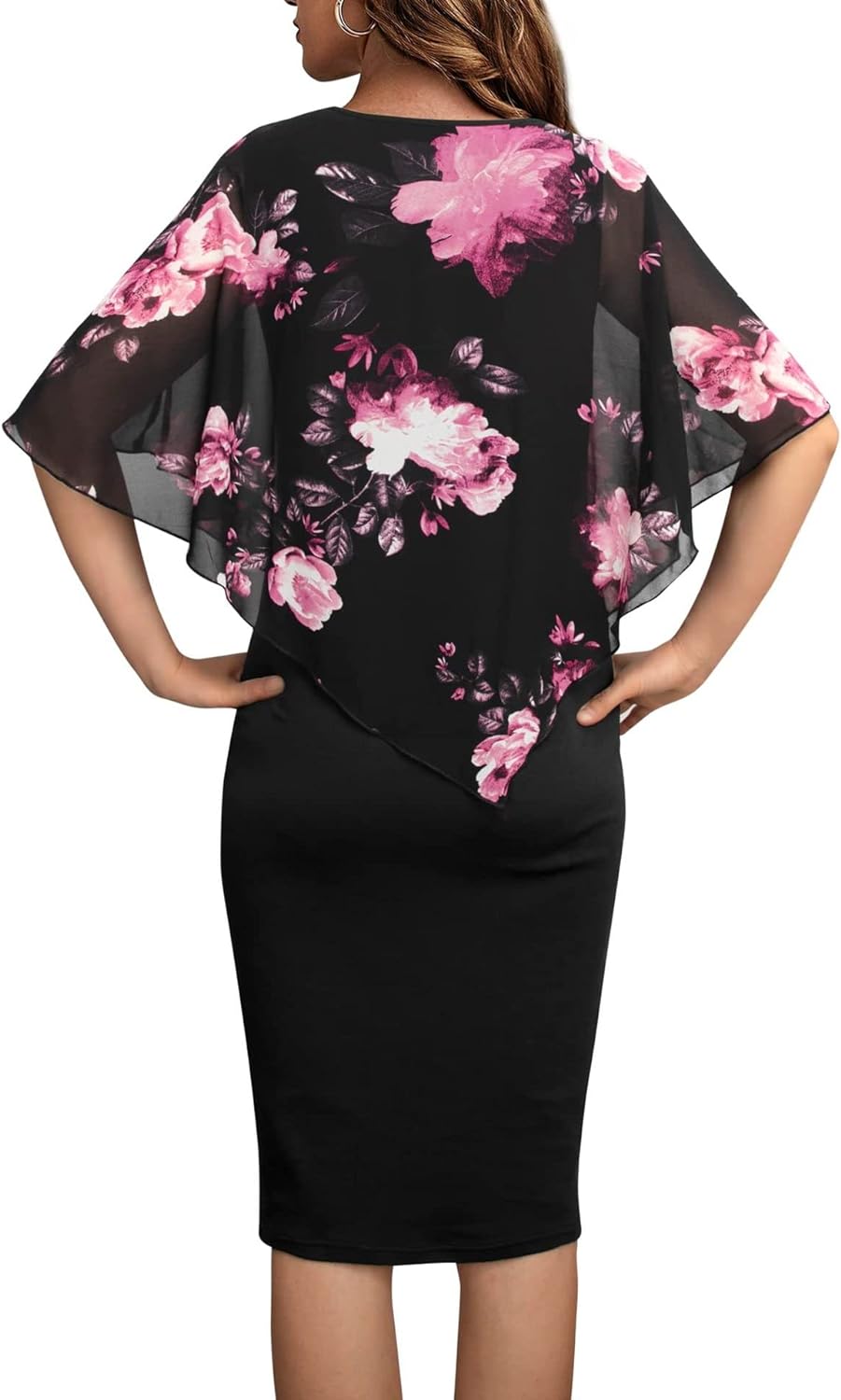 CHARTOU Women’s Sleeveless Shawl Dress Formal V Neck Chiffon Cape Tank Pencil Bodycon Party Evening Dress(Floral)