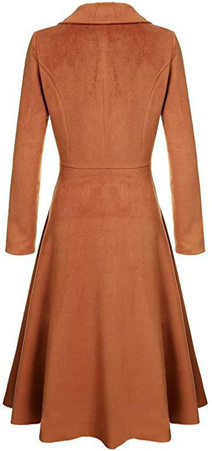CHARTOU Women’s Slim Fit Single Breasted Long Sleeve Ruffle Work Office Pea Coat Trench Coat(Brown)