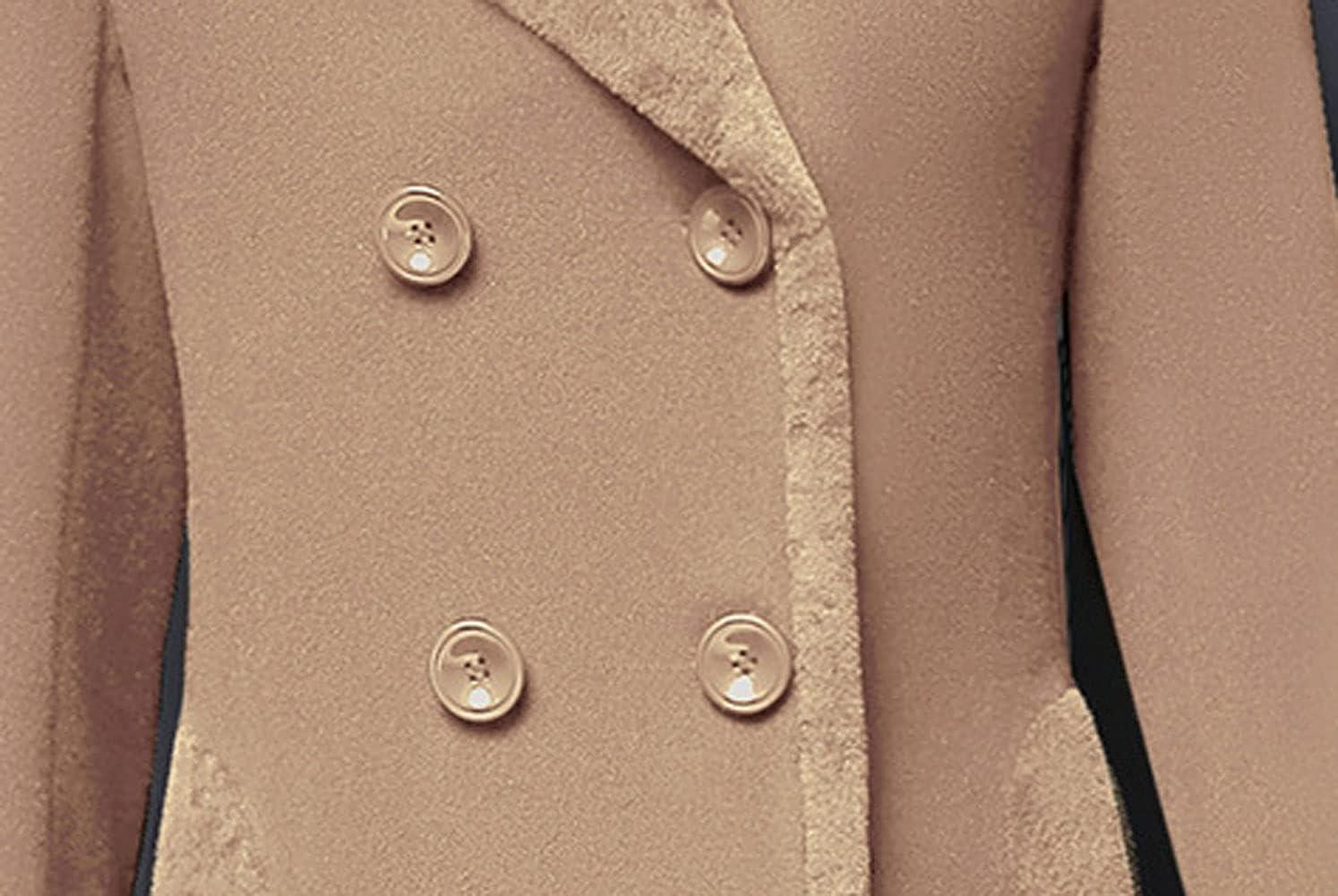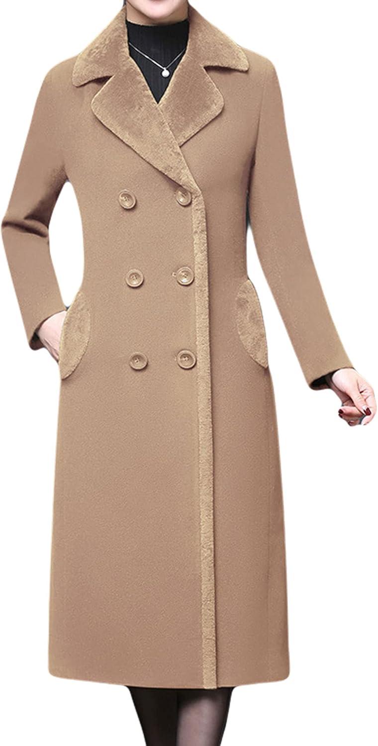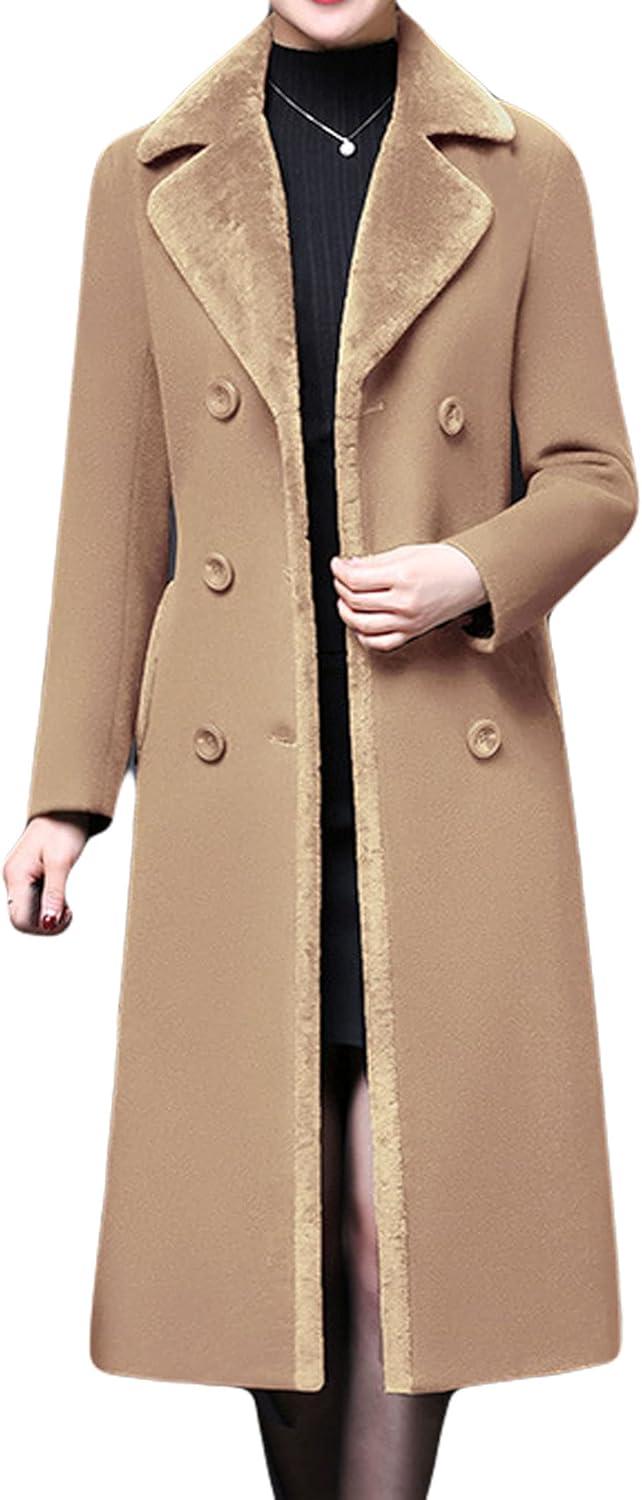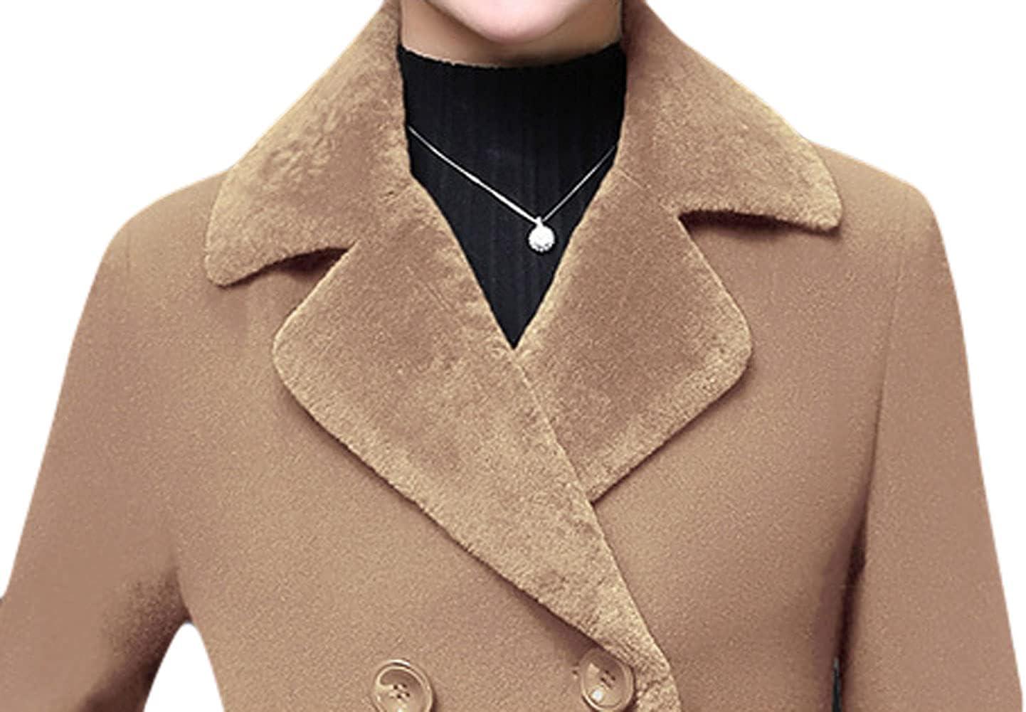 CHARTOU Women’s Slim Fur Collar Double Breasted Long Wool Blend Coat Pea Coat(Camel)