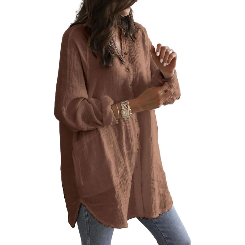 Don’t miss out on our limited-time offer: get a free {accessory} with your purchase of CHARTOU Women’s Slouchy V Neck Button Down Long Sleeve Midi Long Blouse Shirt(Brown).