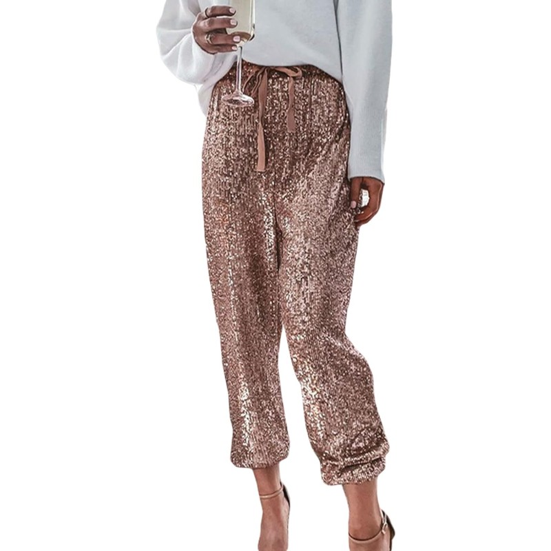 Don’t miss out on our limited-time offer: get a free {accessory} with your purchase of CHARTOU Women’s Sparkly Sequin Elastic Waist Paper Bag Jogger Lounge Pants with Drawstring.