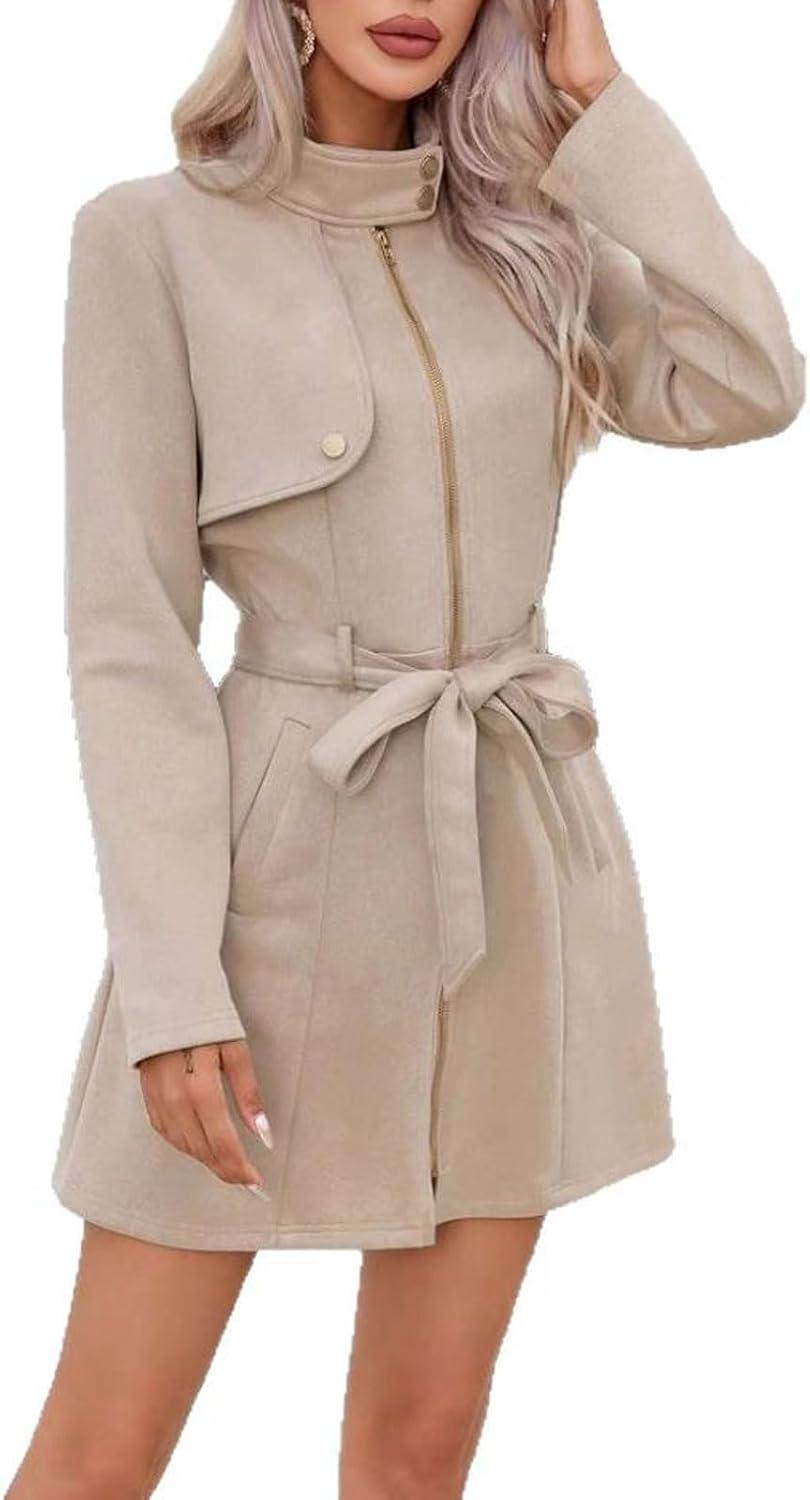 Women's Stand Collar Dress Coat Winter Zip Up Belted Cinched A Line Light Wool Trench Peacoat Elegant pea coats for women classy/ Slim fit peacoat womens coat with pockets/ Fall midi overcoat for women winter trench jacket women lightweight wool dress coat warm apricot wool jacket women black Chic wool trench overcoat for women party navy stand collar wool coat women going out wine light weight wool jacket for women trendy pink zipper mid long peacoat for women winter outwear stylish a line dress coat for women Fall warp coat dress Elegant wool dress coat women winter wool trench coat belt lightweight midi peacoat for women fall fashion cinched waisted a line overcoat dressy western wool jacket outwear casual zipper wool blend pea coat slim fit trench coatigan for ladies dressy