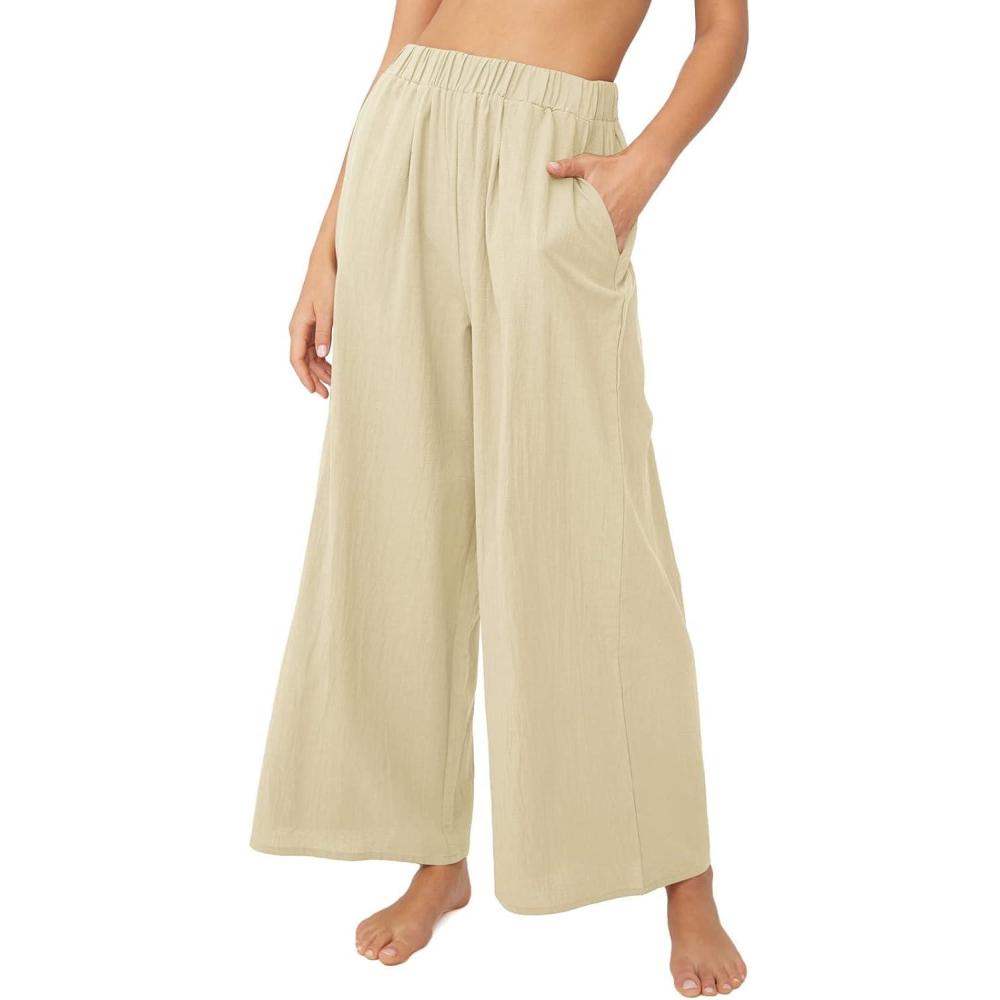 CHARTOU Women’s Summer Beach Casual Cotton Linen High Rise Wide Leg Loose Palazzo Pants(Khaki)