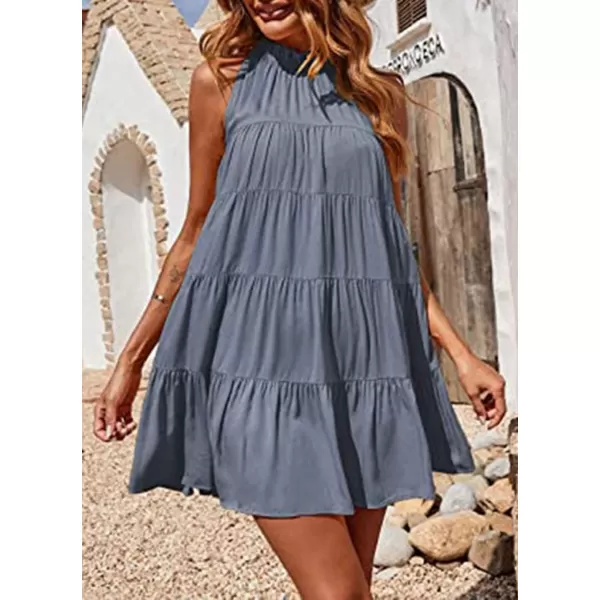 CHARTOU Women’s Summer Boho Sleeveless Ruffle Beach Sundress Tiered Pleated Flowy Tank Mini Dress(Gray Blue)