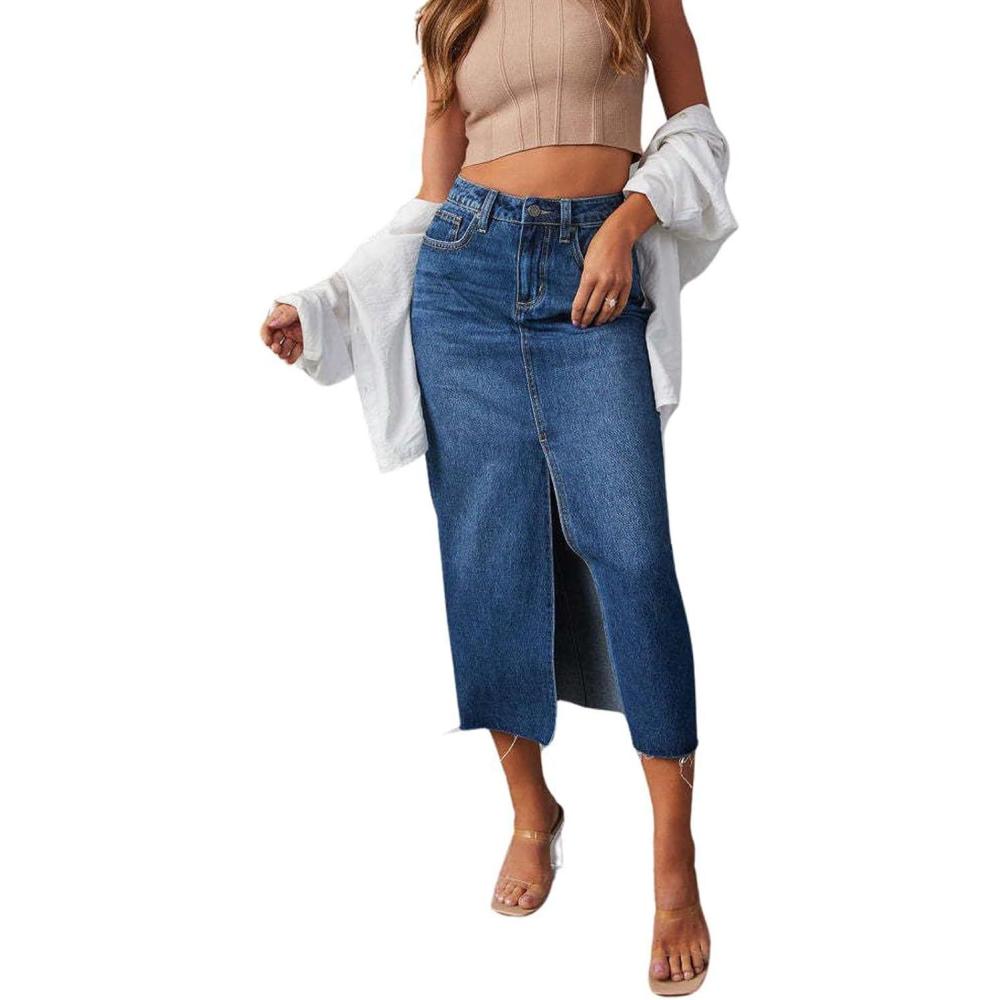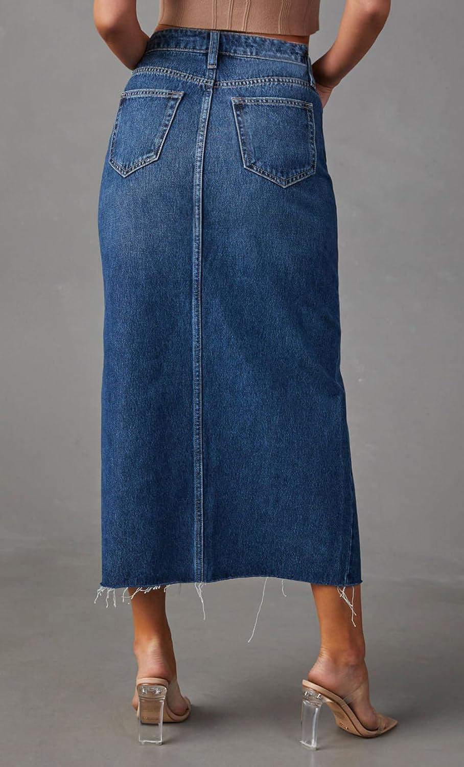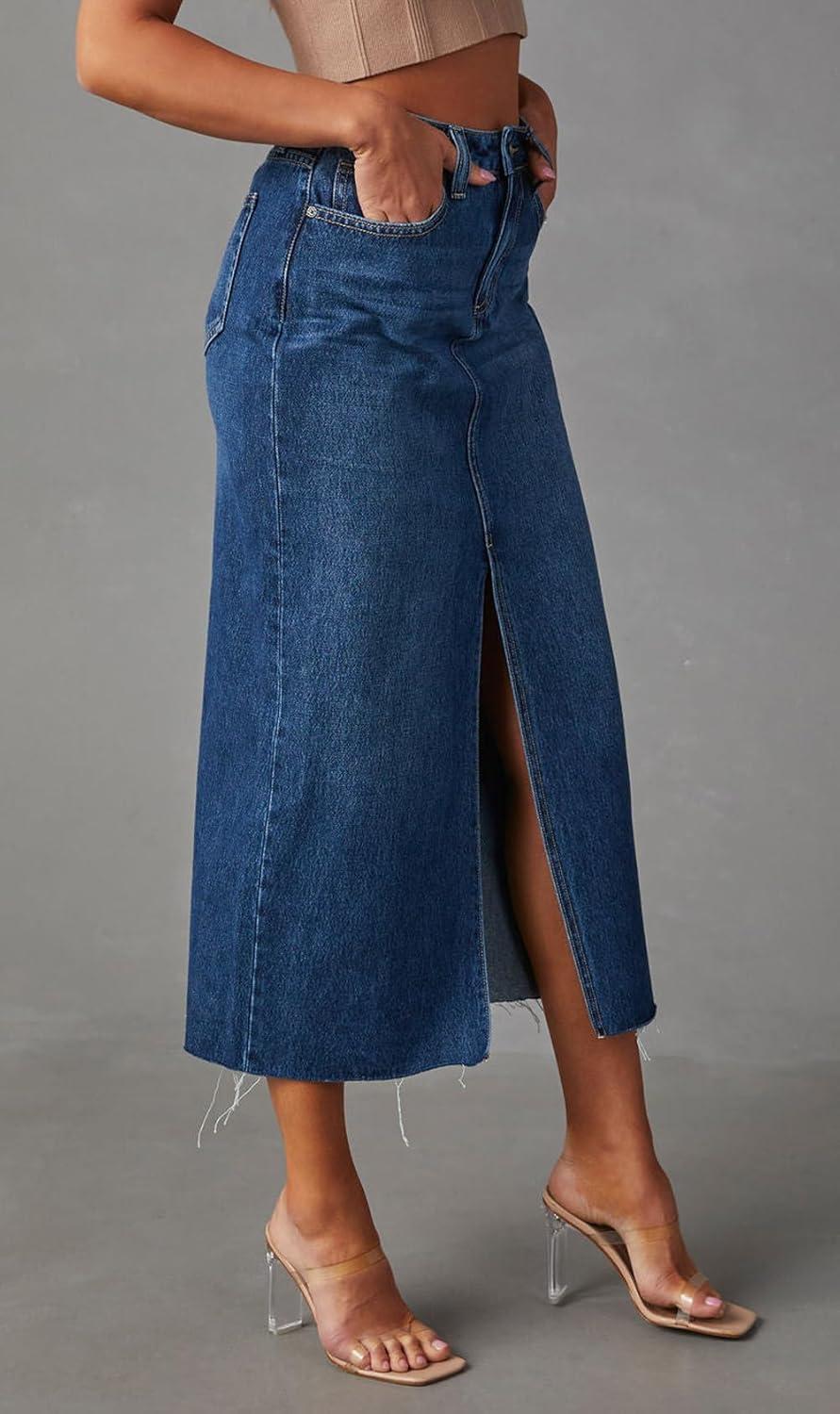 CHARTOU Women’s Summer Classic High Waist Split Midi-Long Denim Jean Pencil Skirt(Dark Blue)