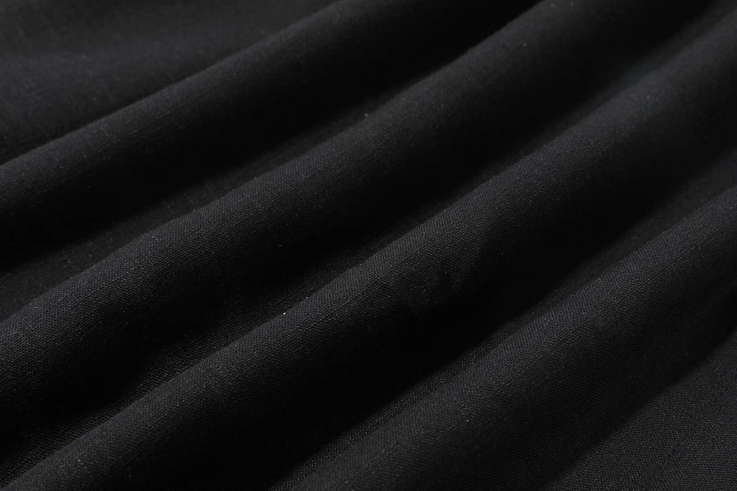 CHARTOU Women’s Summer Linen Elastic Back Buttoned Swing Midi A Line Skirt(Black)