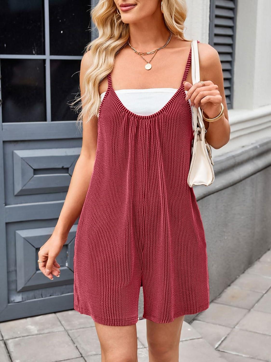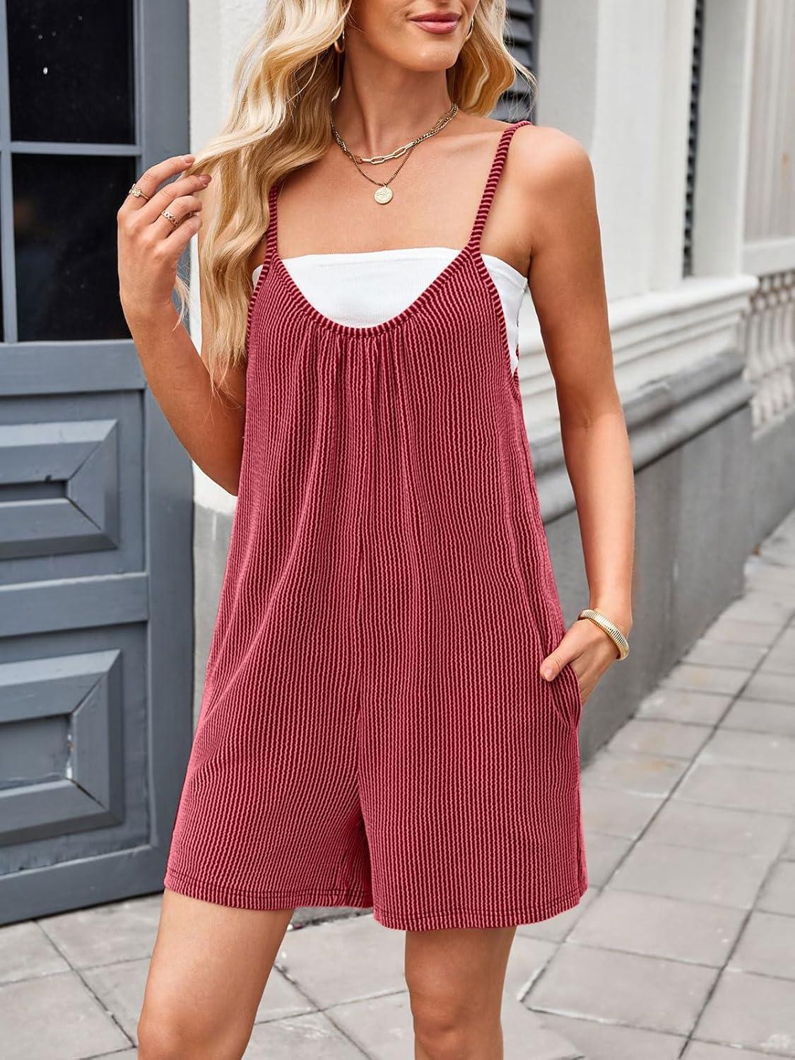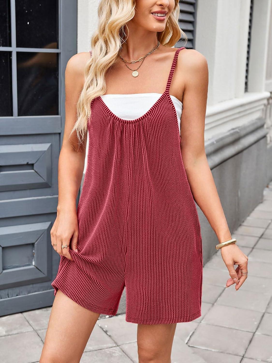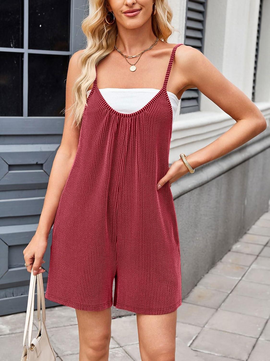 Be the first to review “CHARTOU Women’s Summer Ribbed U Neck One Piece Romper Overalls Spaghetti Strap Shorts Jumpsuit with Pockets(Red)”