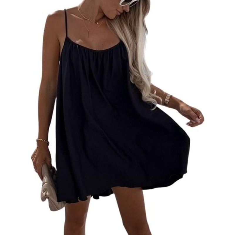 CHARTOU Women’s Summer Sexy Spaghetti Straps Back Crisscross Flowy Mini Short Dress(Black)