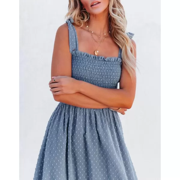 Be the first to review “CHARTOU Women’s Summer Sleeveless Smocked Slit A-Line Swiss Dot Mesh Maxi Long Dress(Blue)”
