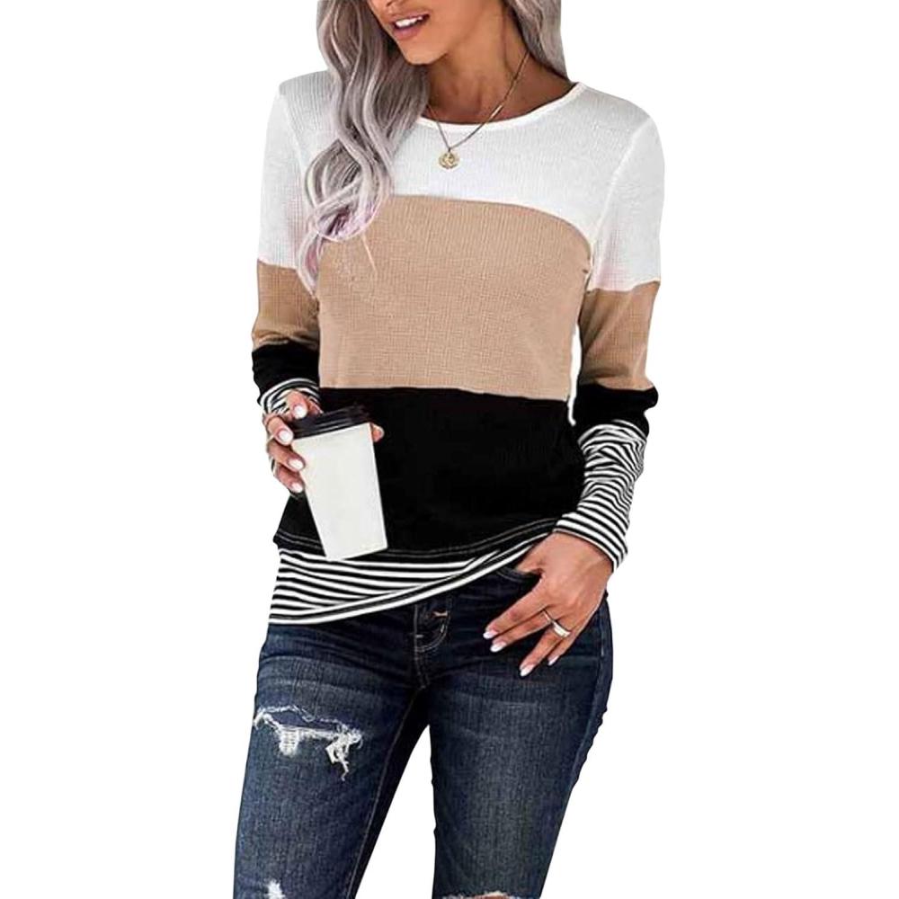 CHARTOU Women’s Trendy Color Block Pullover Tunic Jumper Wear to Work Jersey Sweater Top(Khaki)