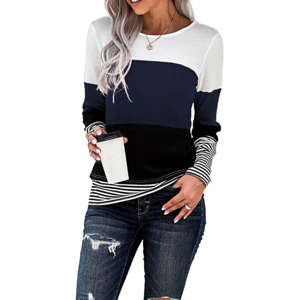 CHARTOU Women’s Trendy Color Block Pullover Tunic Jumper Wear to Work Jersey Sweater Top(Navy)