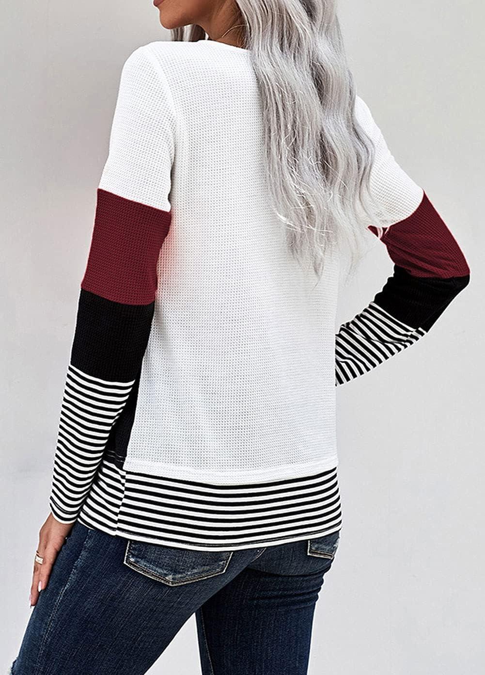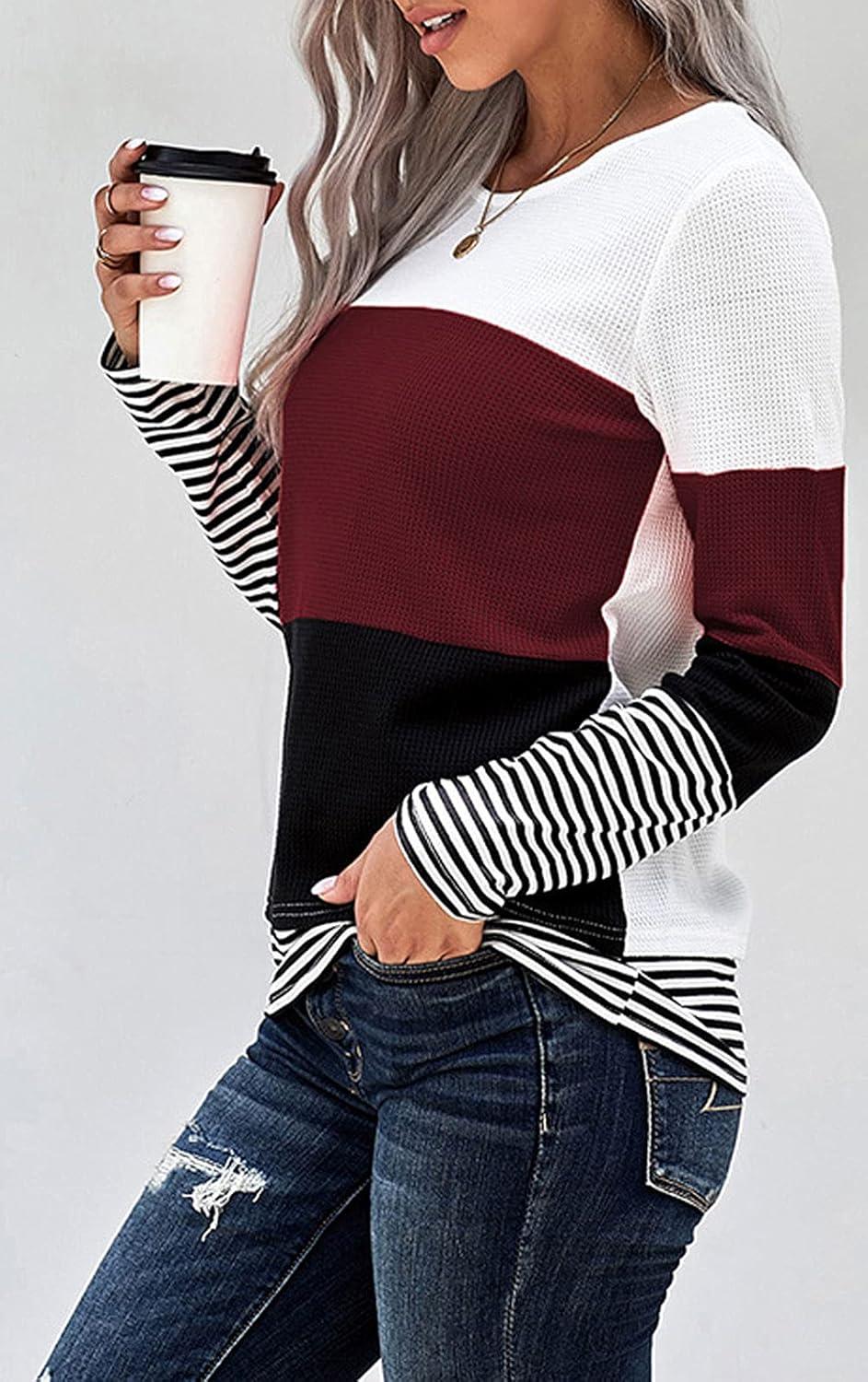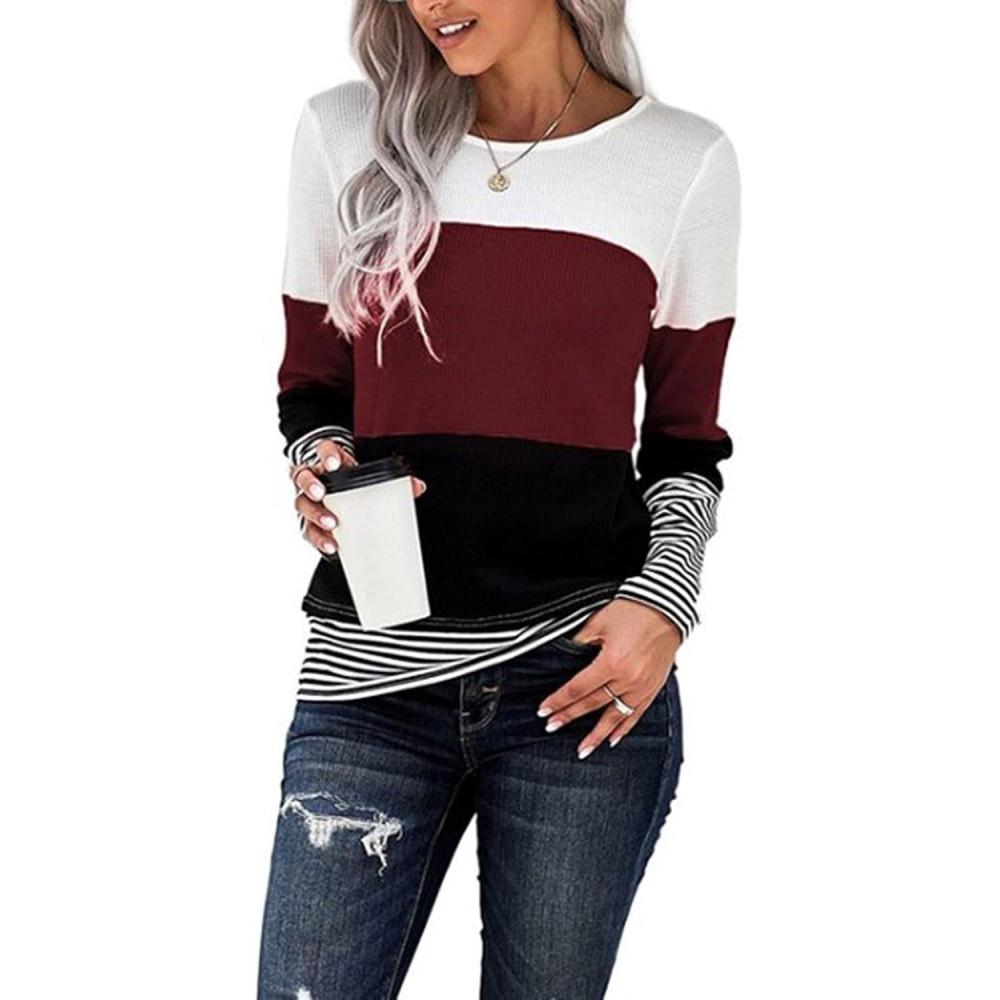 CHARTOU Women’s Trendy Color Block Pullover Tunic Jumper Wear to Work Jersey Sweater Top(Wine Red)