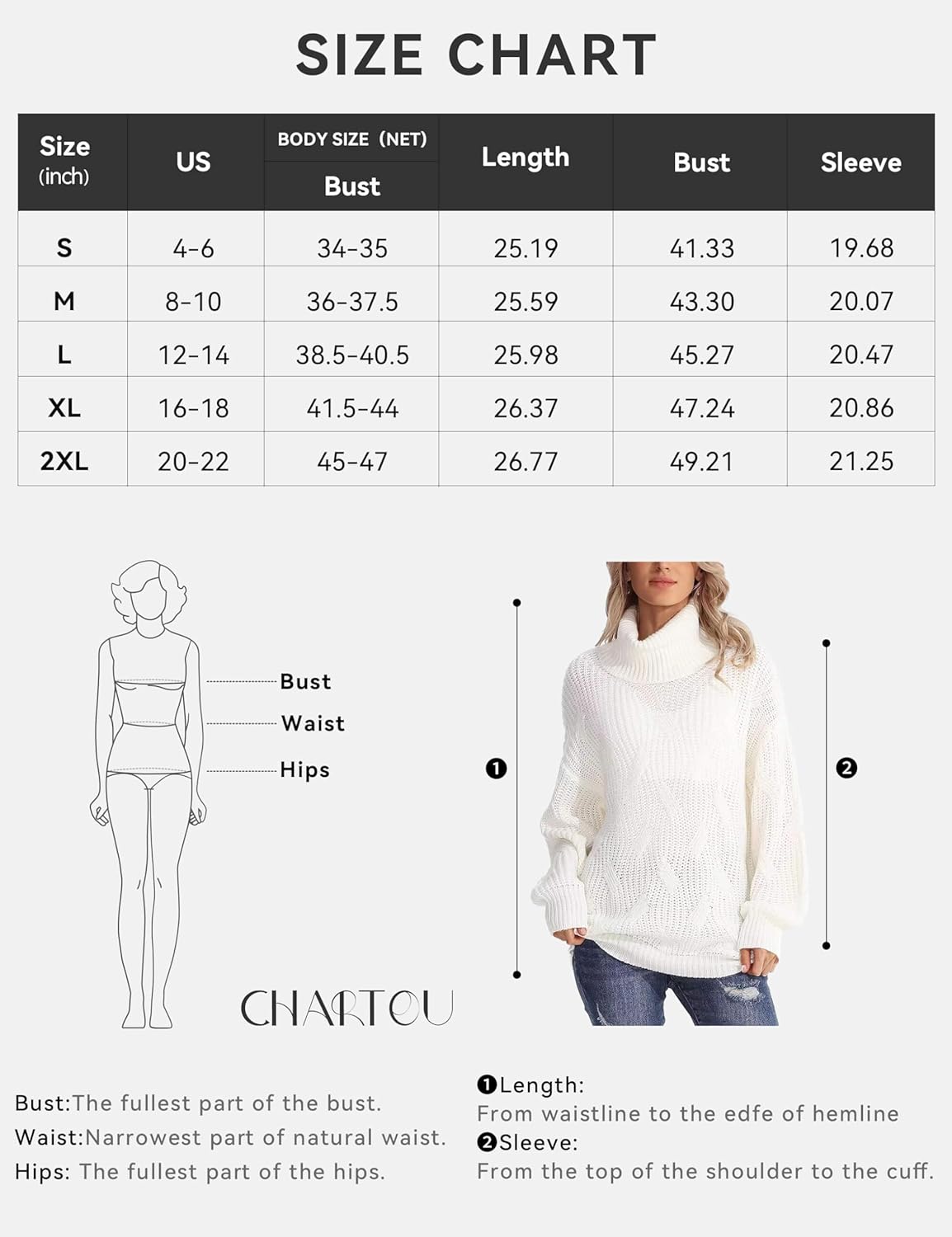 CHARTOU Women’s Turtleneck Pullover Sweater Casual Chunky Cable Knit Oversized Solid Knitwear Tops(White)