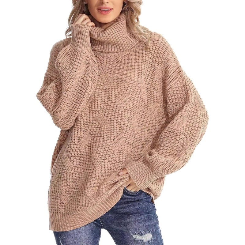 CHARTOU Women’s Turtleneck Pullover Sweater Casual Chunky Cable Knit Oversized Solid Knitwear Tops(Khaki)