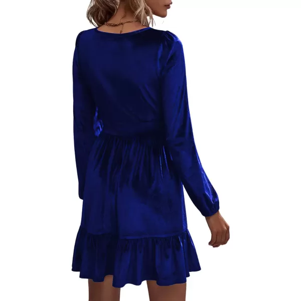 CHARTOU Women’s Velvet V-Neck Long Sleeve Flared Ruffle Cocktail Party Skater Dress(Royalblue)