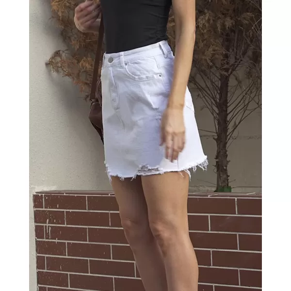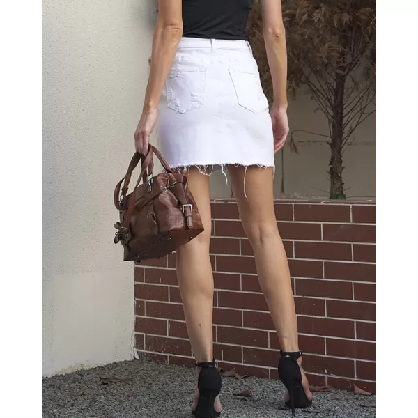 CHARTOU Women’s Washed Distressed Broken Mid Waist Frayed Ripped Denim Jean Thigh Length Pencil Skirt(White)