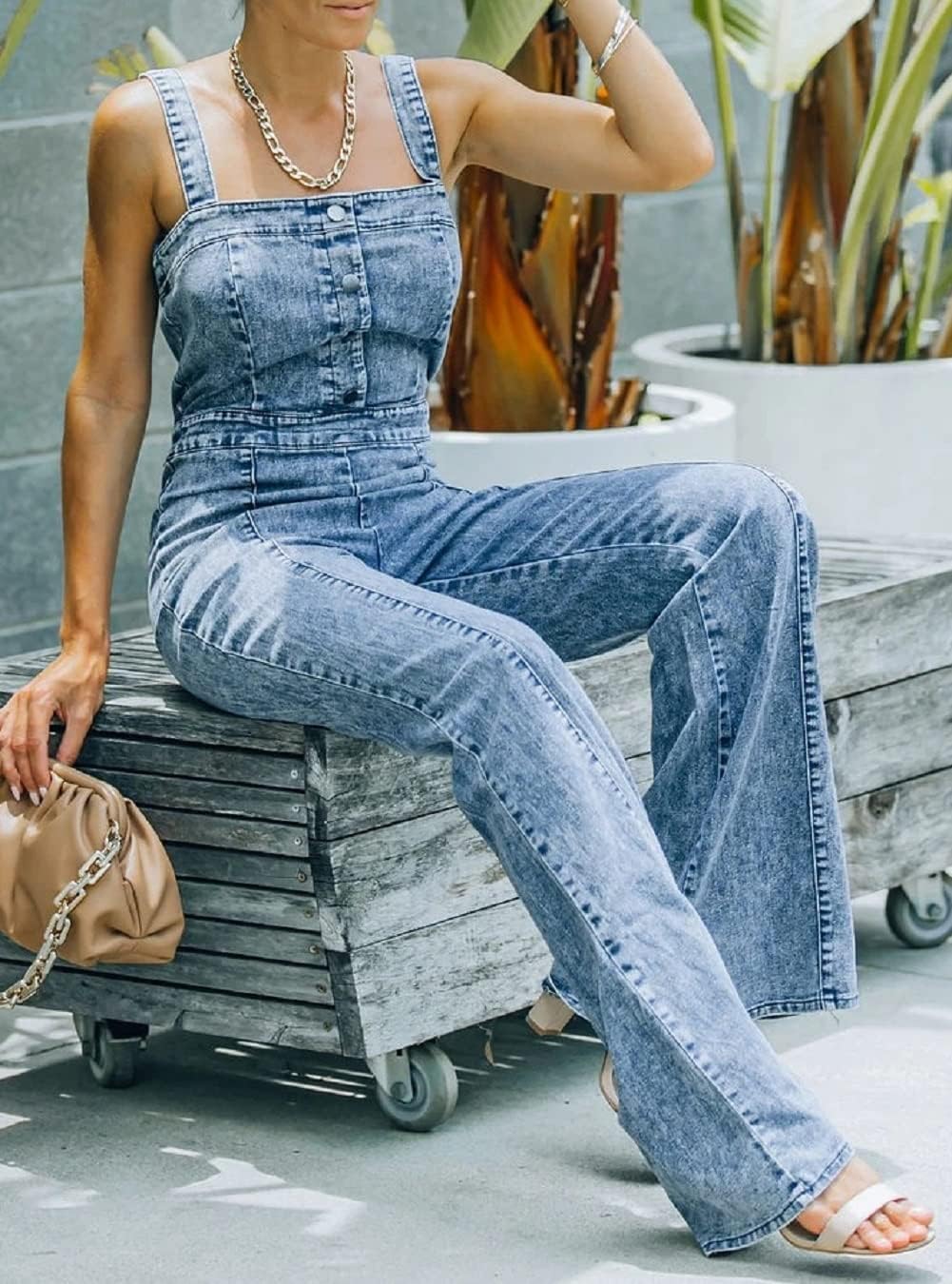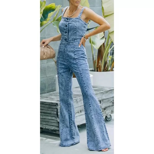 Women's Washed Sleeveless High Waist Flared Bell Bottom Jean Pants Denim Jumpsuits