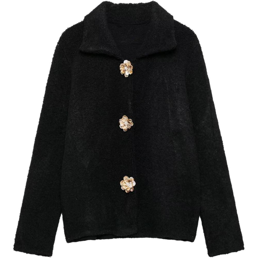 CHARTOU Women's Winter Faux Fur Knit Cardigan Jacket Elegant Floral Button Lapel Long Sleeve Sweater Coats Elegant fuzzy jacket ladies/ Winter warm fur coats for women dressy Design: Button down closure, lapel collar, long sleeves, regular fit, faux fur cardigan, 2 flower buckles, knit cardigan sweaters for women dressy, fuzzy and warm, solid color- black fur coat, white sweater, khaki cardigan, burgundy faux fur coat Fall Dressy Fur Coat Tops: Winter elegant faux fur cardigan jacket women/ Vintage solid color burgundy fuzzy sweater for women 2024 trendy/ Warm knit black cardigan for women dressy outfits ladies/ Soft button down sweaters for women going out/ Fall crewneck coats with floral buckles/ Furry long sleeve sweater jackets fall casual lapel crop tops Winter long sleeve retro faux fur jacket women elegant lapel collar black fur coat fuzzy sweaters for women with mental crystal floral buckles short wine red cardigan for women trendy soft white button down sweaters for women