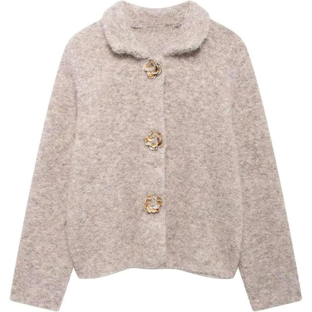CHARTOU Women's Winter Faux Fur Knit Cardigan Jacket Elegant Floral Button Lapel Long Sleeve Sweater Coats Elegant fuzzy jacket ladies/ Winter warm fur coats for women dressy Design: Button down closure, lapel collar, long sleeves, regular fit, faux fur cardigan, 2 flower buckles, knit cardigan sweaters for women dressy, fuzzy and warm, solid color- black fur coat, white sweater, khaki cardigan, burgundy faux fur coat Fall Dressy Fur Coat Tops: Winter elegant faux fur cardigan jacket women/ Vintage solid color burgundy fuzzy sweater for women 2024 trendy/ Warm knit black cardigan for women dressy outfits ladies/ Soft button down sweaters for women going out/ Fall crewneck coats with floral buckles/ Furry long sleeve sweater jackets fall casual lapel crop tops Winter long sleeve retro faux fur jacket women elegant lapel collar black fur coat fuzzy sweaters for women with mental crystal floral buckles short wine red cardigan for women trendy soft white button down sweaters for women