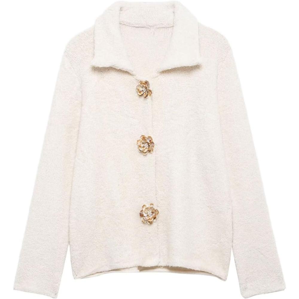 CHARTOU Women's Winter Faux Fur Knit Cardigan Jacket Elegant Floral Button Lapel Long Sleeve Sweater Coats Elegant fuzzy jacket ladies/ Winter warm fur coats for women dressy Design: Button down closure, lapel collar, long sleeves, regular fit, faux fur cardigan, 2 flower buckles, knit cardigan sweaters for women dressy, fuzzy and warm, solid color- black fur coat, white sweater, khaki cardigan, burgundy faux fur coat Fall Dressy Fur Coat Tops: Winter elegant faux fur cardigan jacket women/ Vintage solid color burgundy fuzzy sweater for women 2024 trendy/ Warm knit black cardigan for women dressy outfits ladies/ Soft button down sweaters for women going out/ Fall crewneck coats with floral buckles/ Furry long sleeve sweater jackets fall casual lapel crop tops Winter long sleeve retro faux fur jacket women elegant lapel collar black fur coat fuzzy sweaters for women with mental crystal floral buckles short wine red cardigan for women trendy soft white button down sweaters for women