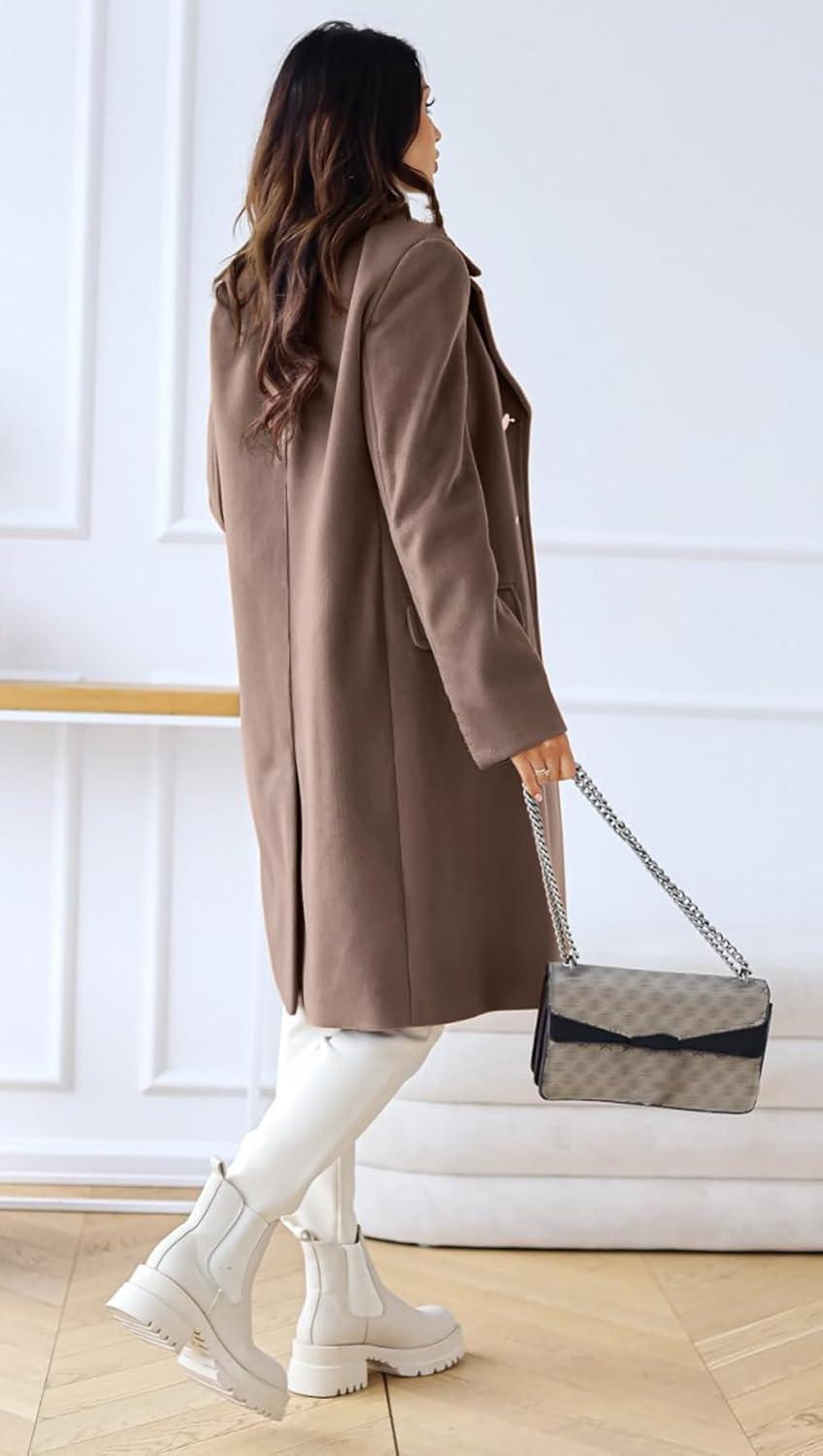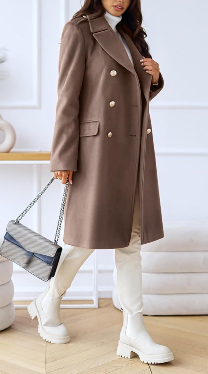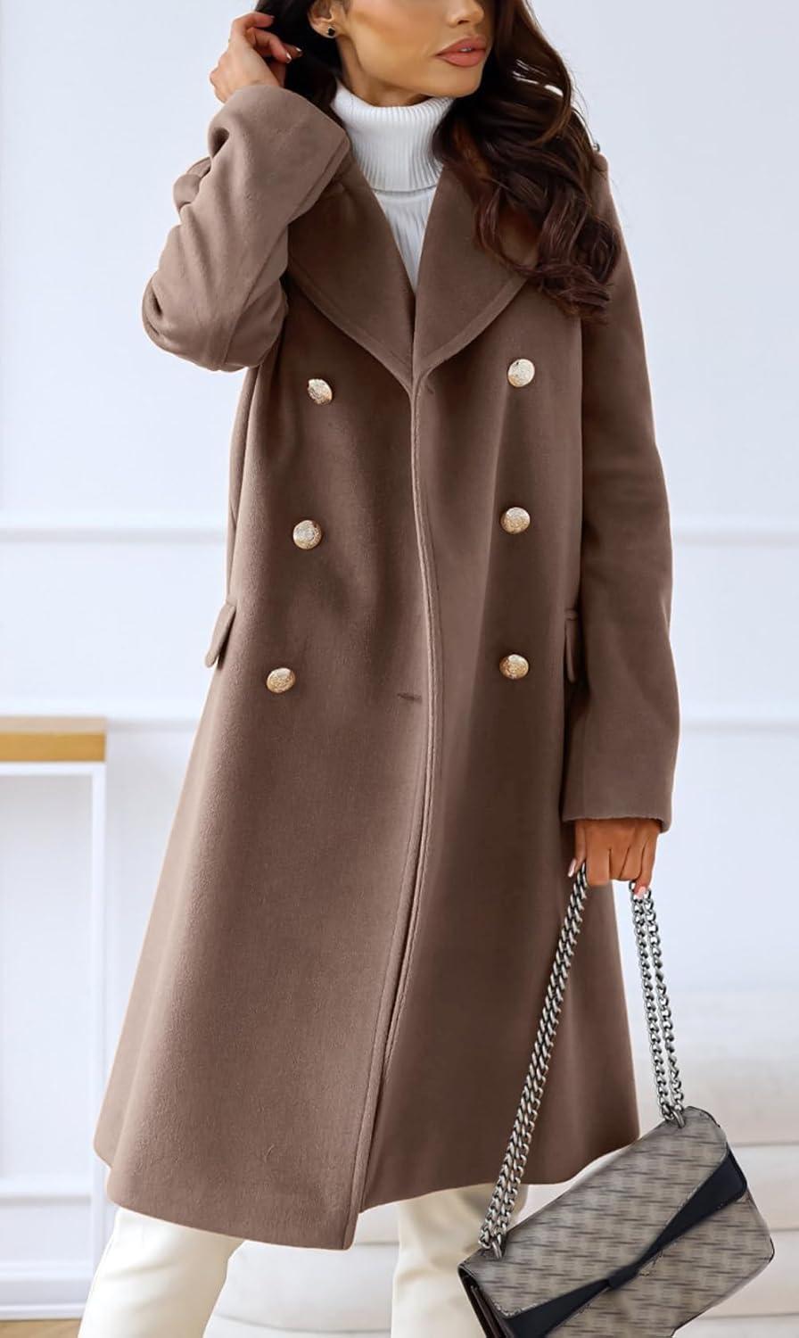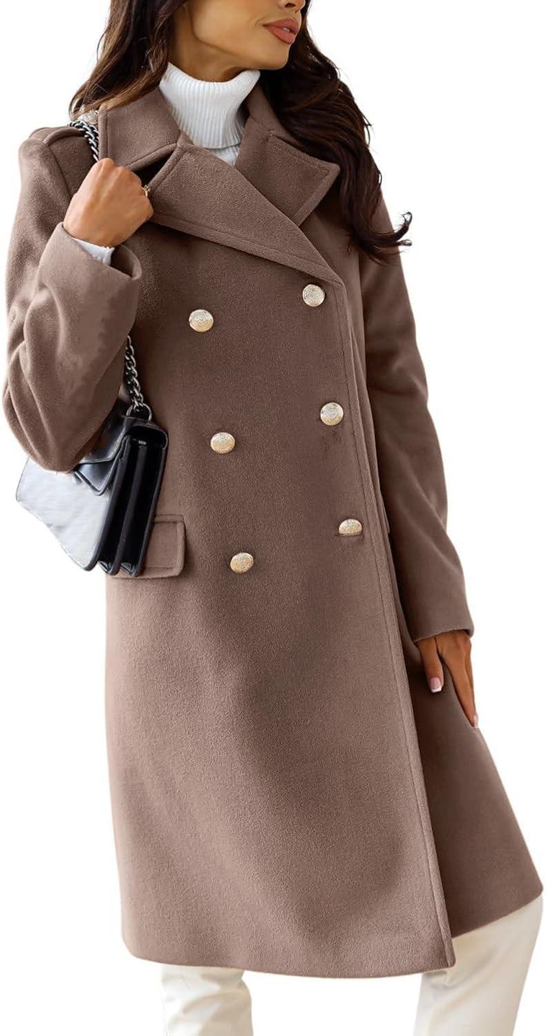 CHARTOU Women's Winter Jacket Double-Breasted Wool Blend Warm Long Trench Coat