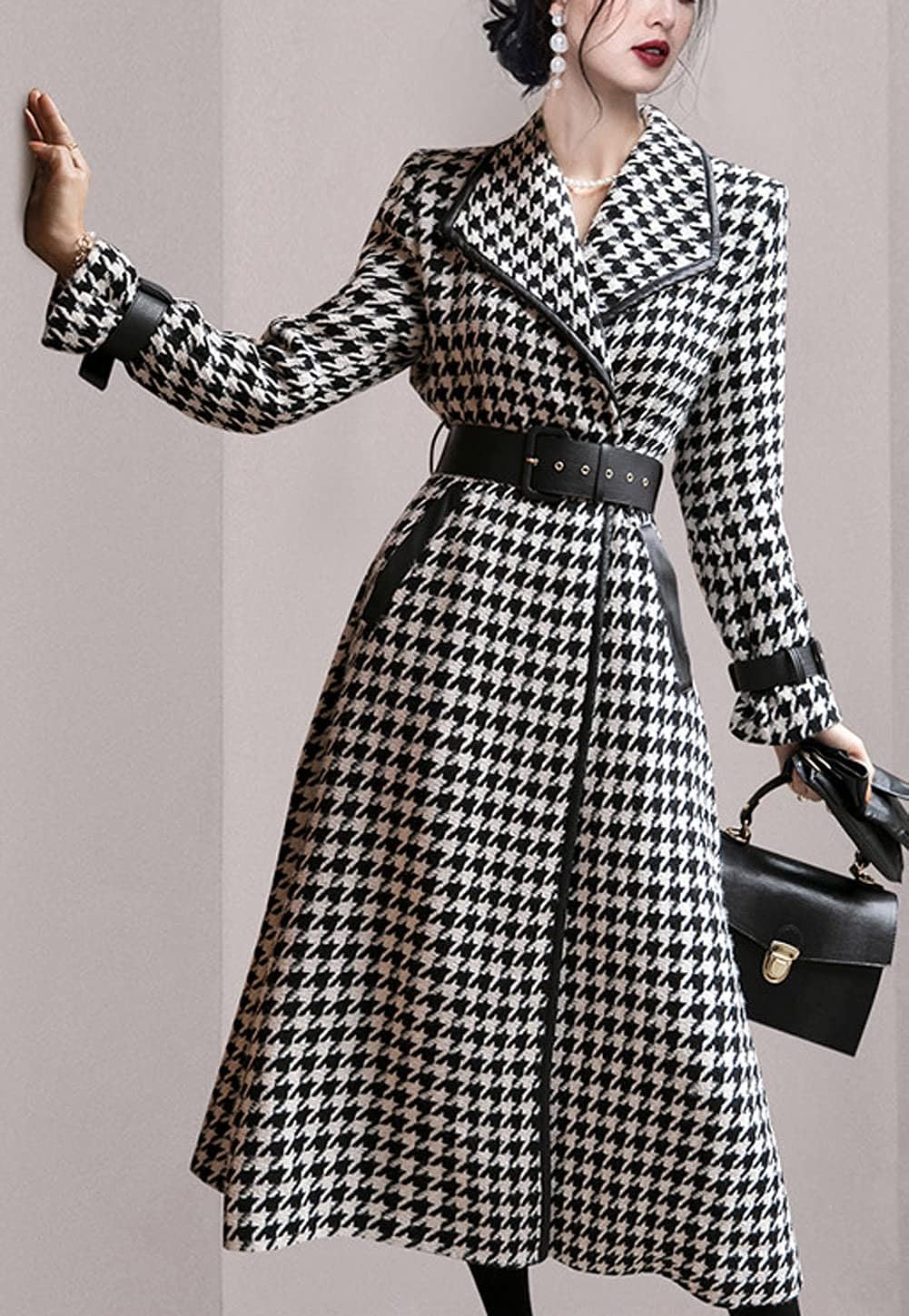 Simple but trend-on: womens elegant plaid woolen midi-long peacoat overcoat