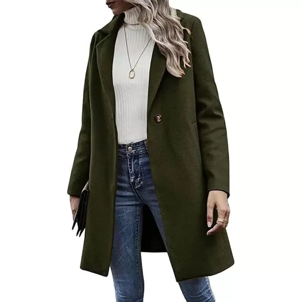 CHARTOU Women’s Woolen Overcoat Oversized Notched Lapel Single Breasted Wool Blend Trench Coat(Green)