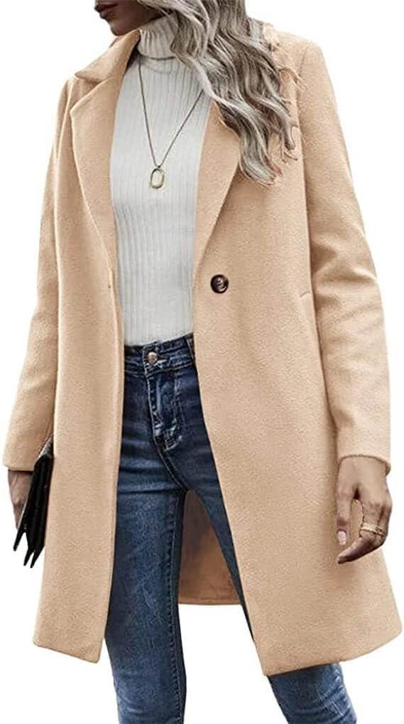 CHARTOU Women’s Woolen Overcoat Oversized Notched Lapel Single Breasted Wool Blend Trench Coat(Khaki)