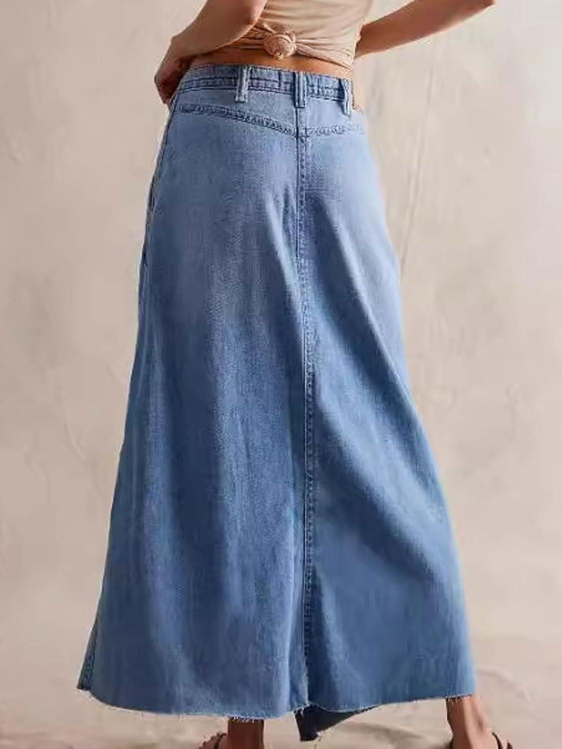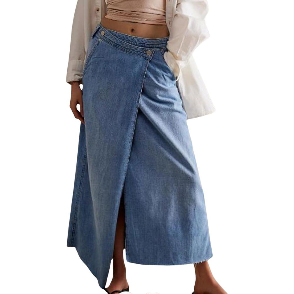 CHARTOU Women's Wrap Denim Midi Skirt A Line Long Jean Skirt Flowy Slit Mid Waist Cargo Skirts with Pockets Soft and skin-friendly cotton skirts for women/ Asymmetrical warp silhouette Design for A Line Skirt: This patchwork skirt womens is crafted with lightweight denim fabric, asymmetrical offset button closure, A-line, front split up, ankle-length, irregular hem, 2 side pockets, 2 solid color- dark blue jean skirts for women, light blue denim midi skirt Trendy Aline Warp Skirts: Women's fashion patchwork denim midi skirt flowy/ Front slit cargo mid long skirts for women trendy/ Comfy button-fly wrapped a line skirt with pockets/ Cowgirls irregular hem plus size maxi skirts/ Blue jean skirts for women denim dark skirt with slit/ Asymmetrical warp aline ong skirts for women/ Soft cotton skirts western/ Mid waisted jean skirts Occasion: This cowgirl high waisted skirt suit for travel, dating, party, school, beach, shopping, casual, club, dailywear, going out, etc. Women’s dressy dark denim skirt can be easily match with vests, tank tops, basic-shirts, boots, canvas shoes, sneakers Size Guide for Cargo Skirts for Women: S=US 4-6, M=US 8-10, L=US 12-14, XL=US 16-18; Please refer to our body size chart in the last picture before purchasing Warped button fly patchwork denim midi skirt flowy cotton asymmetrical warp plus size maxi skirt cargo aline long skirts for women dressy high waist a line skirt with pockets irregular front split up blue jean skirts for women denim