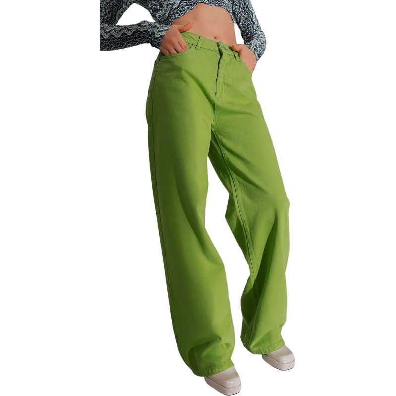 Be the first to review “CHARTOU Women’s Y2K High Waist Candy Color Straight Wide Leg Denim Jeans Pants(Green)”
